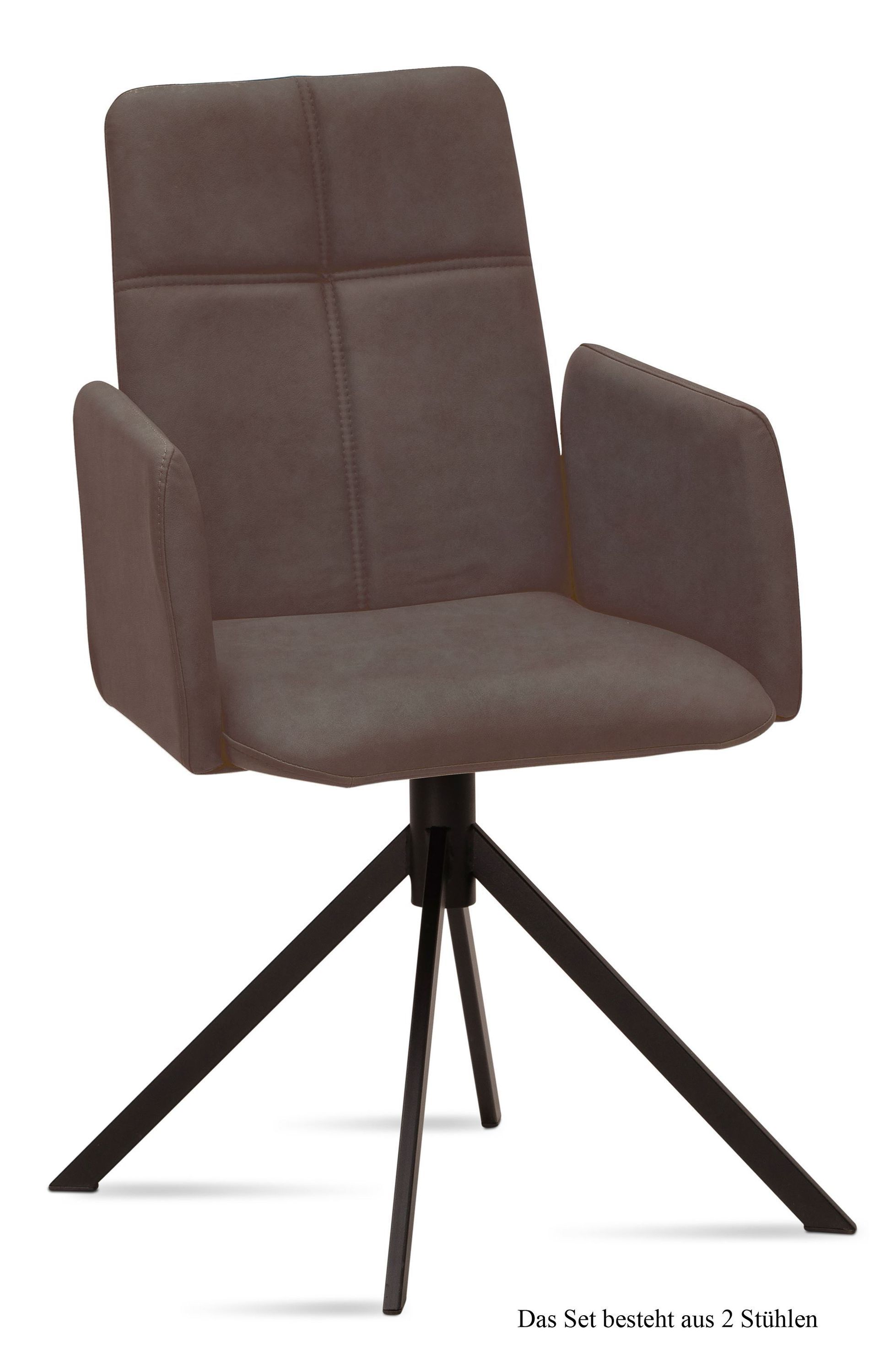 Armlehnstuhl (2er-Set) Druci 52x92x60 Schwarz/Espresso