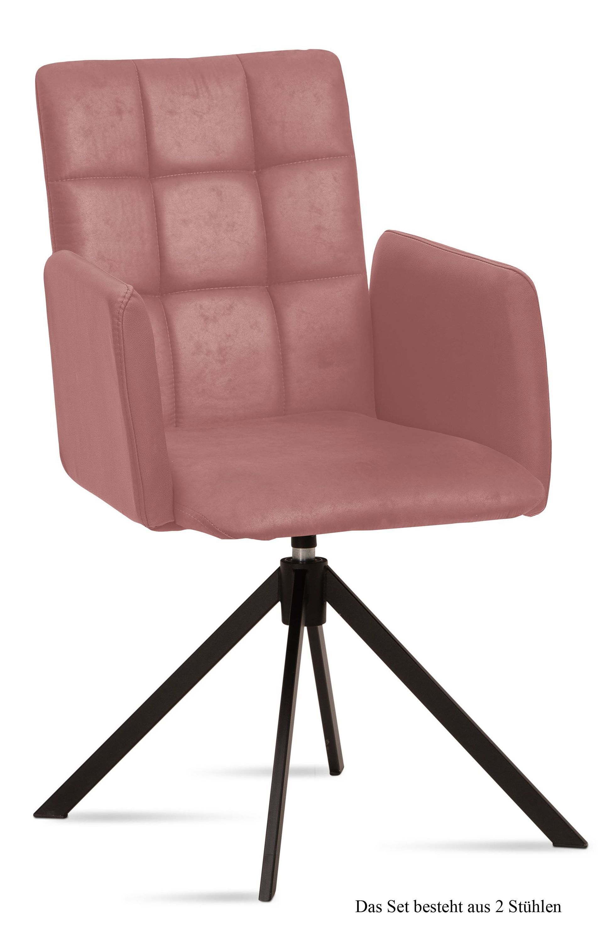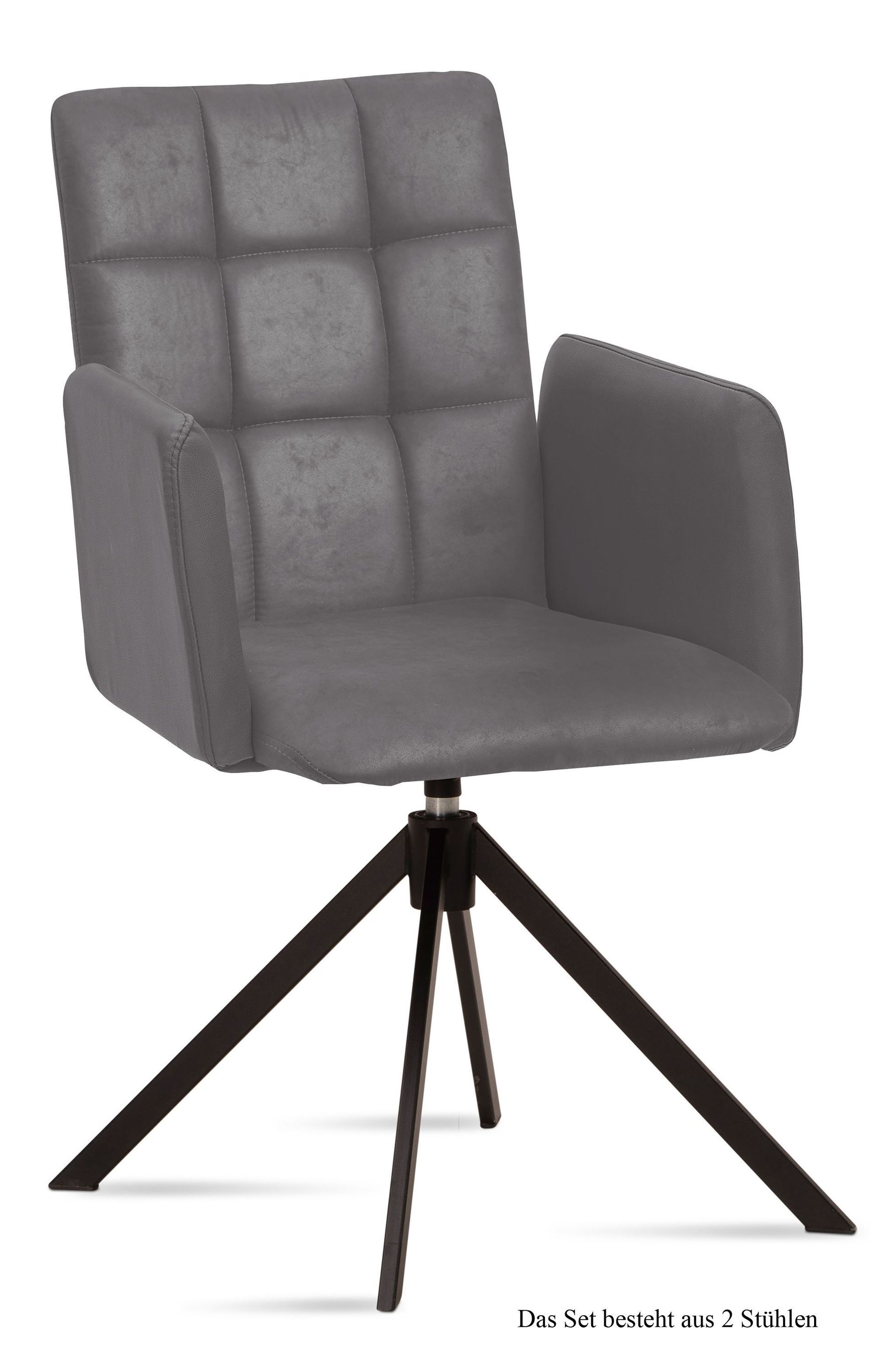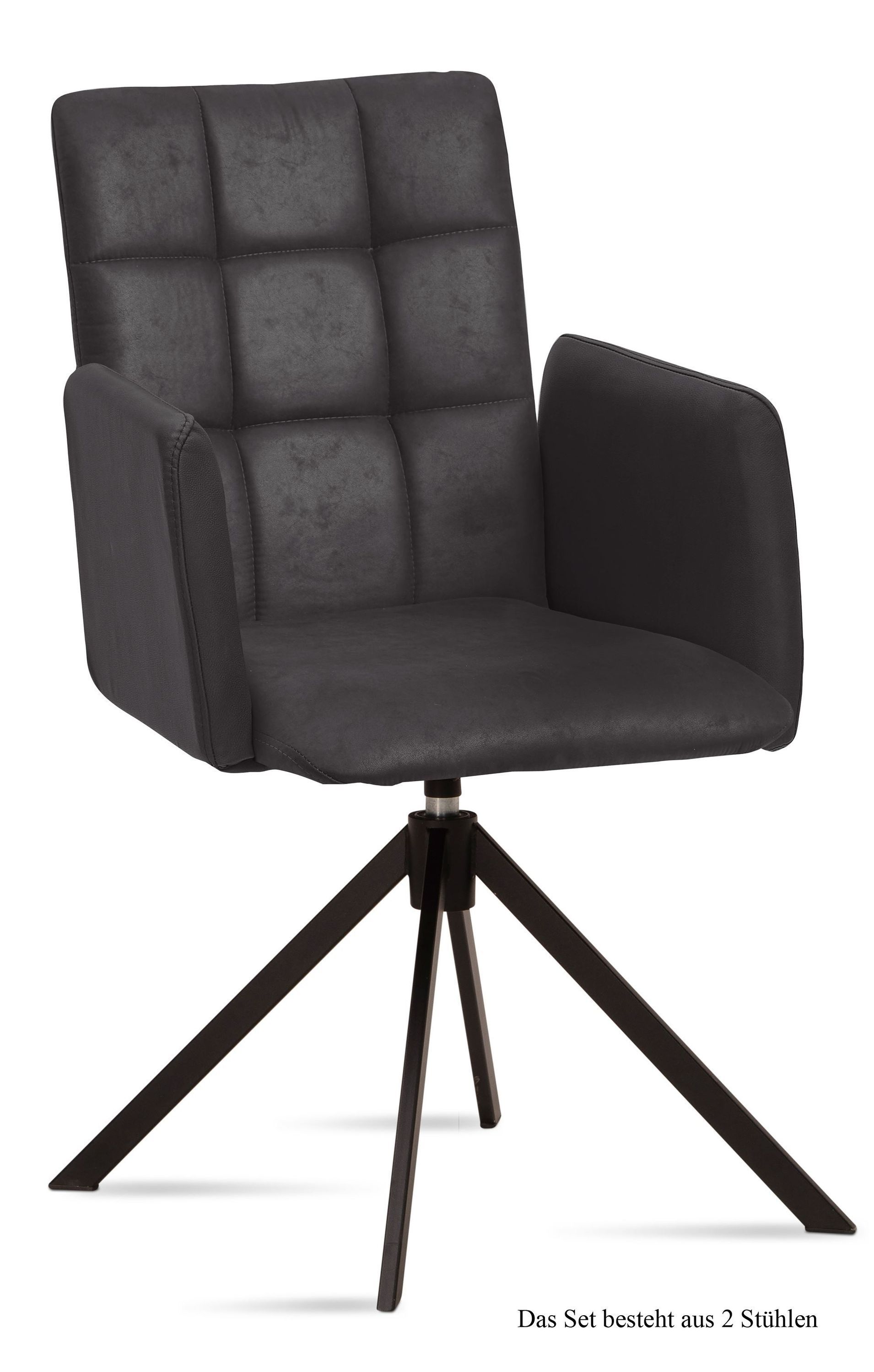 Armlehnstuhl drehbar (2er-Set) Deeann 52x91x60 Schwarz/Cognac