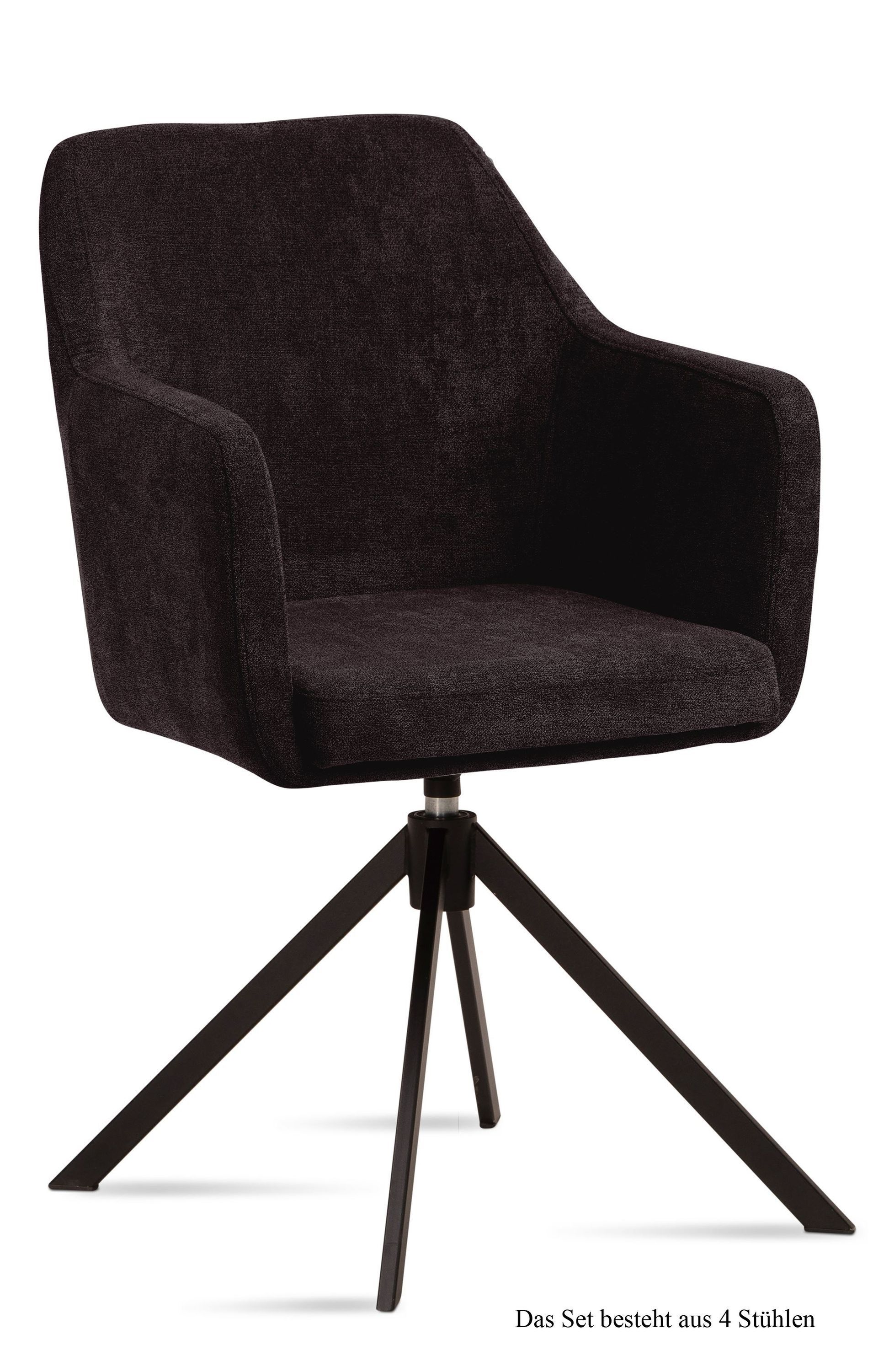 Armlehnstuhl drehbar (2er-Set) Denice 57x87x60 Schwarz/Natur