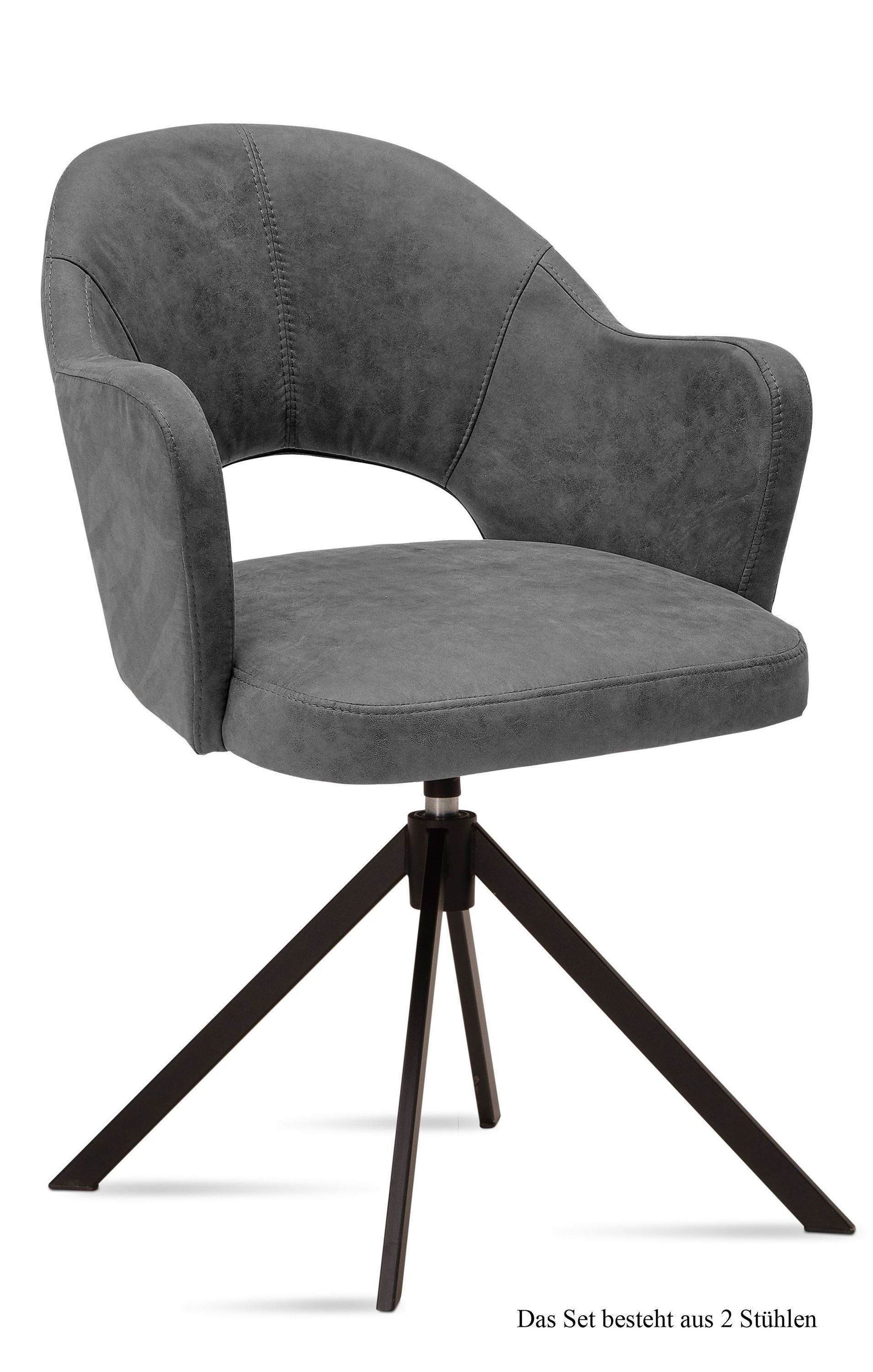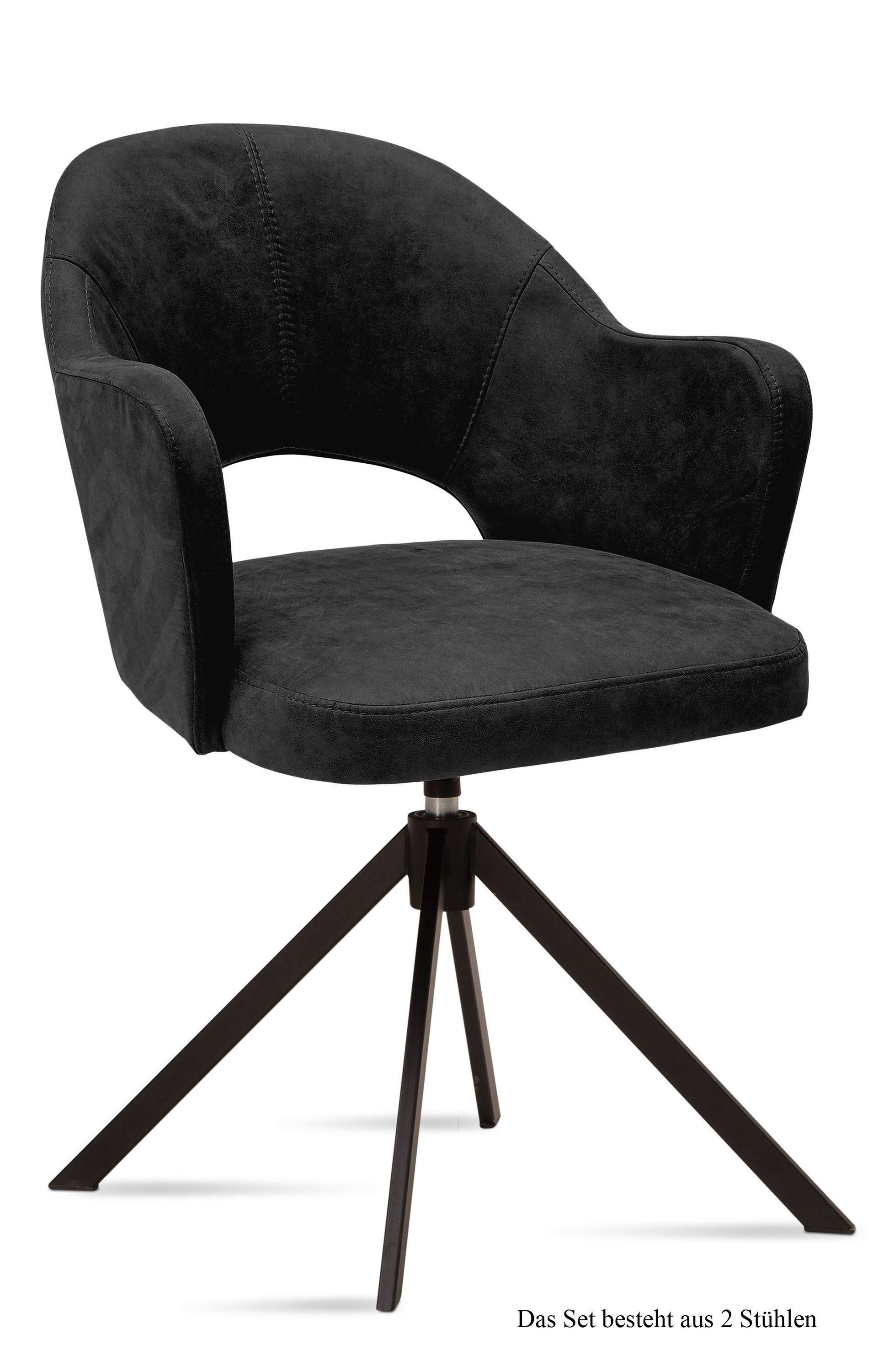 Armlehnstuhl drehbar (2er-Set) Denies 59x87x61 Schwarz/Rosewood