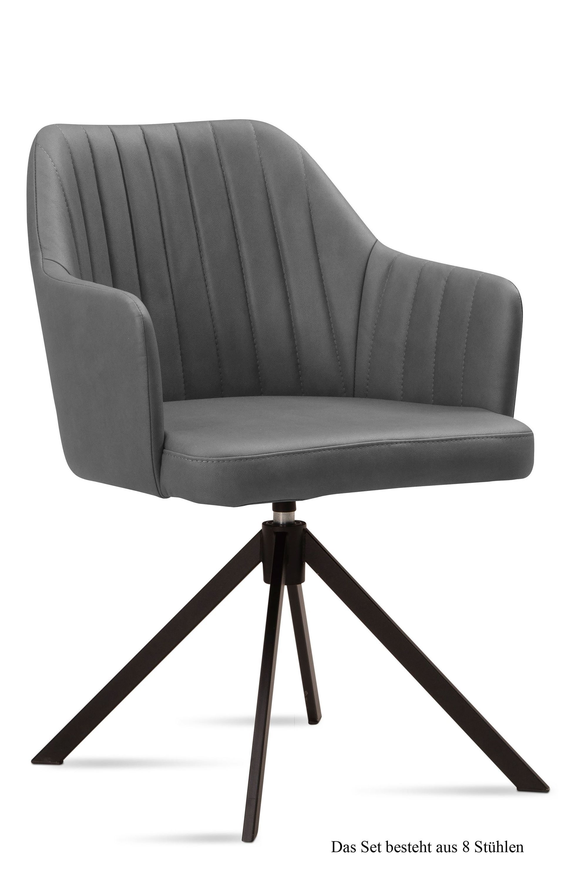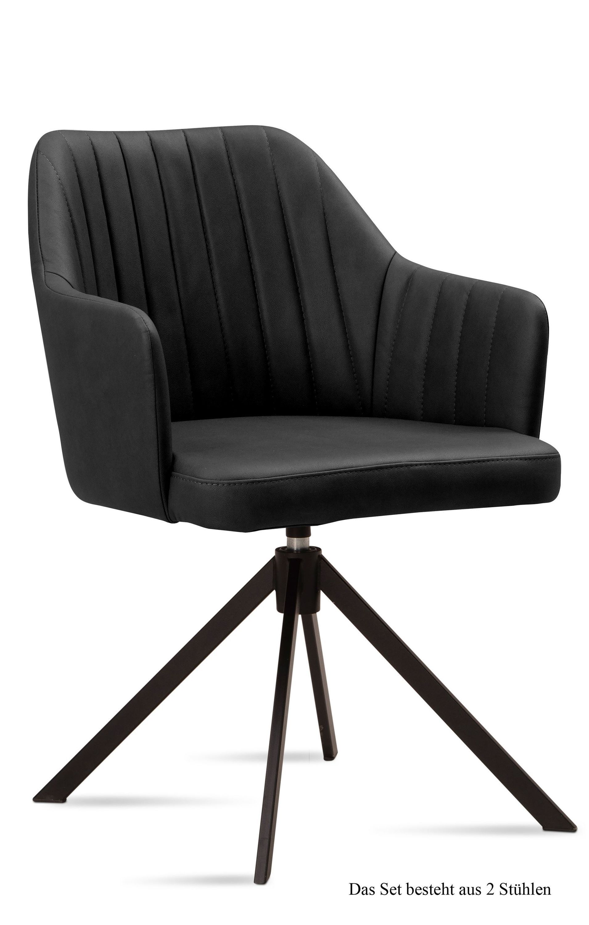 Armlehnstuhl drehbar (2er-Set) Dennie 58x81x60 Schwarz/Cognac