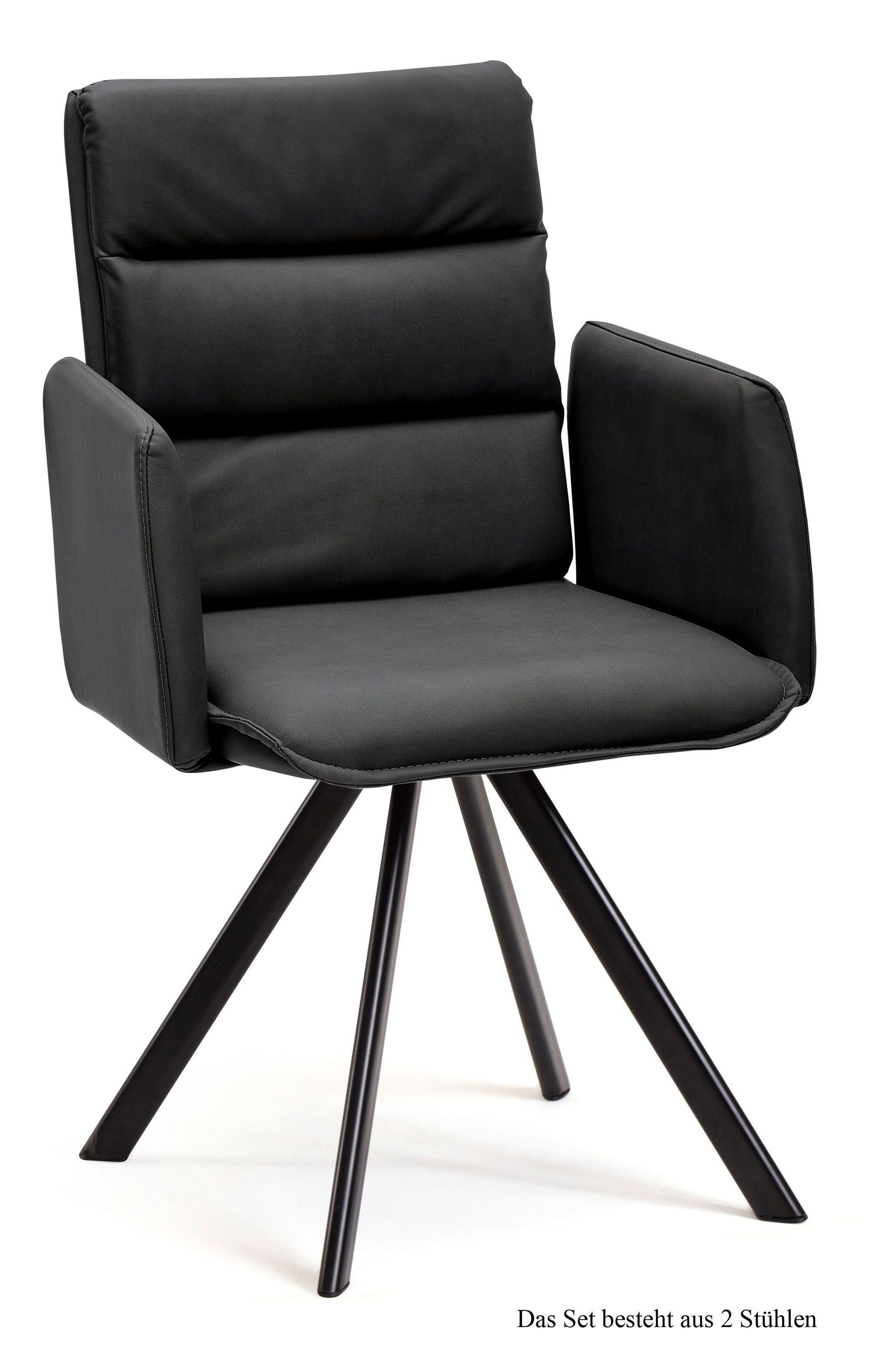 Armlehnstuhl drehbar (2er-Set) Devin 52x92x60 Schwarz/Cognac