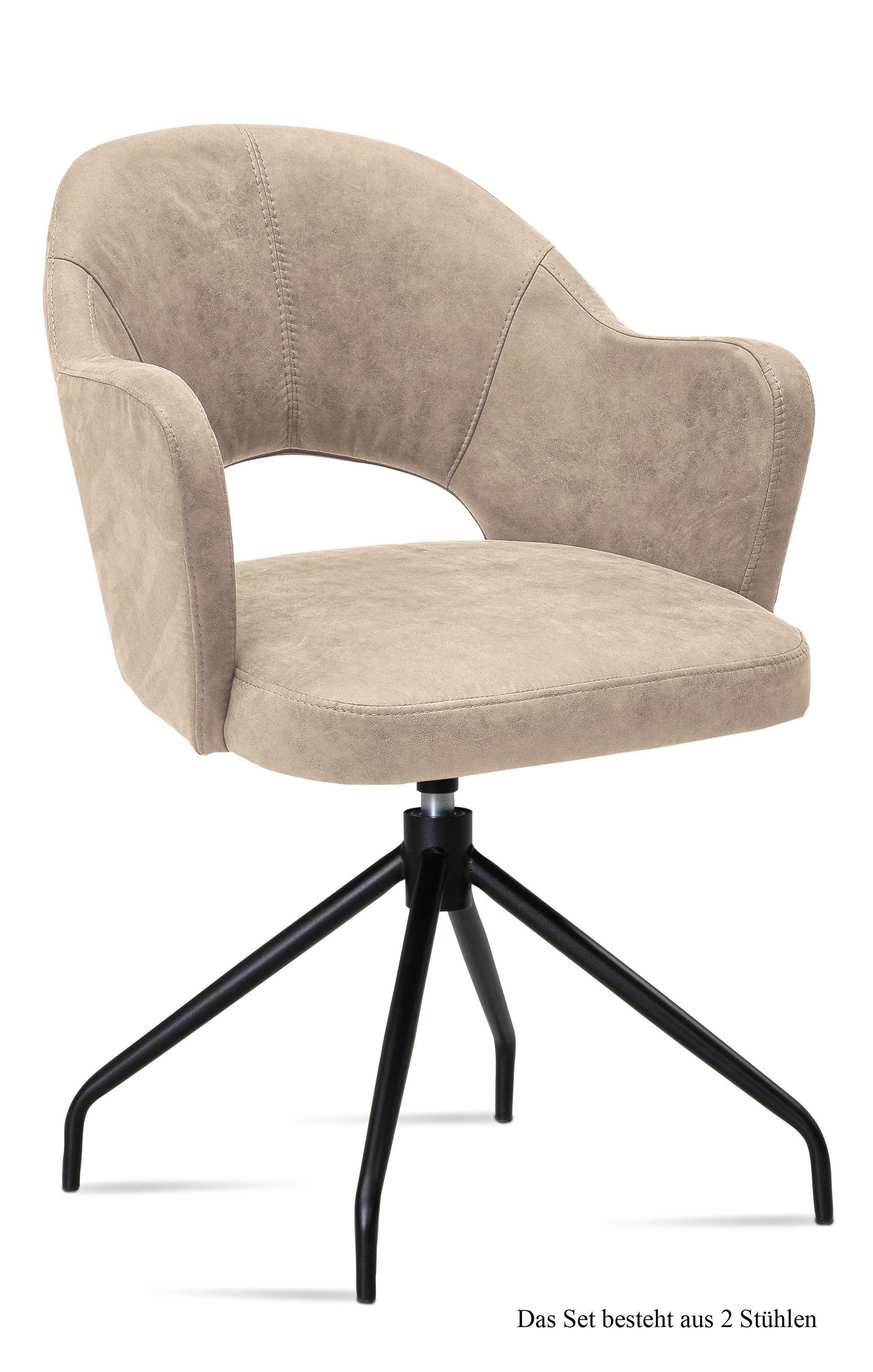 Armlehnstuhl drehbar (2er-Set) Dorcas 59x87x61 Schwarz/Espresso