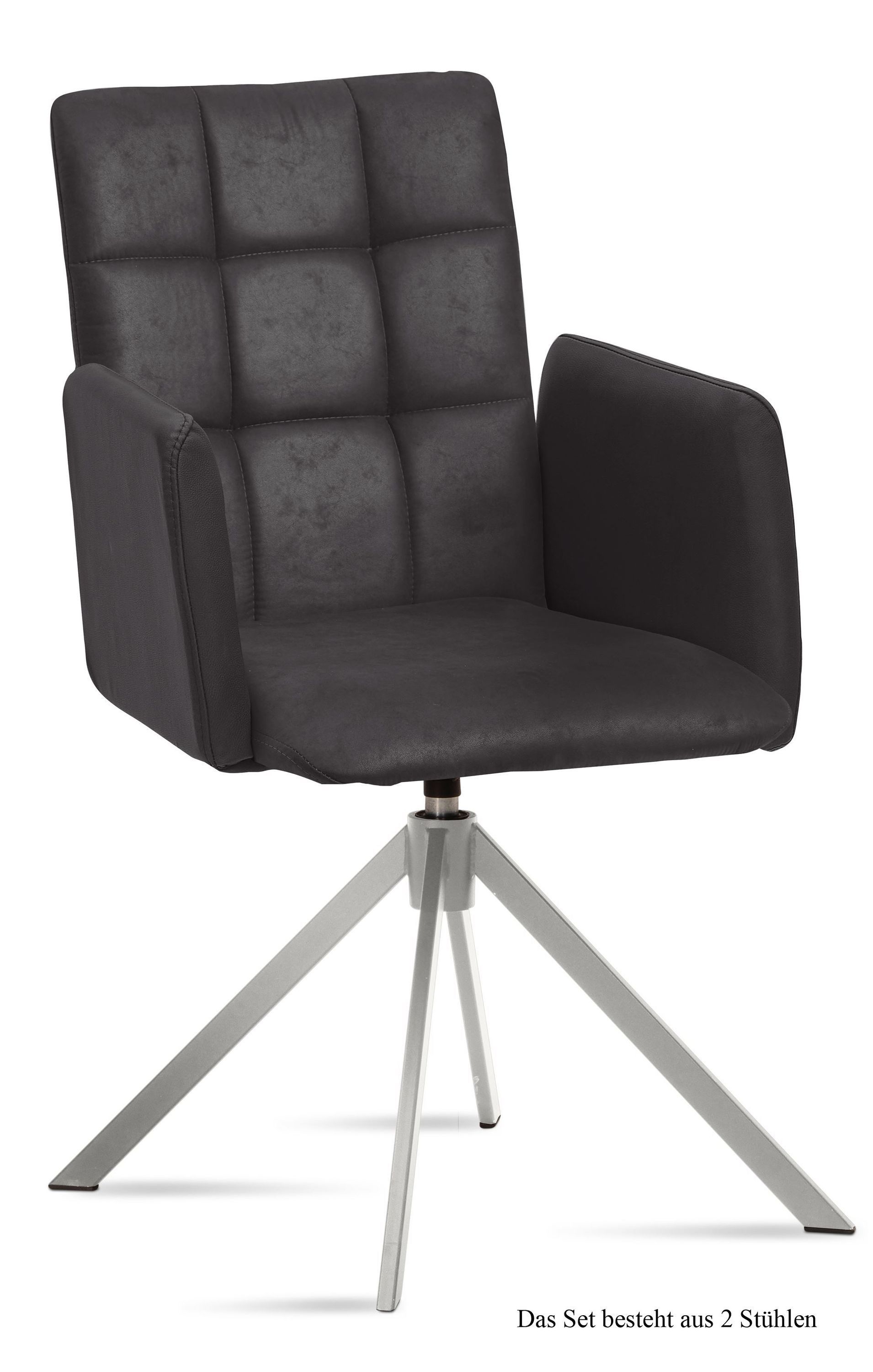 Armlehnstuhl drehbar (2er-Set) Drusie 52x91x60 Edelstahl/Khaki