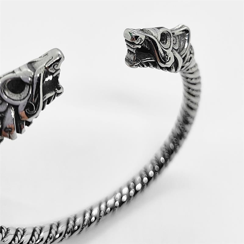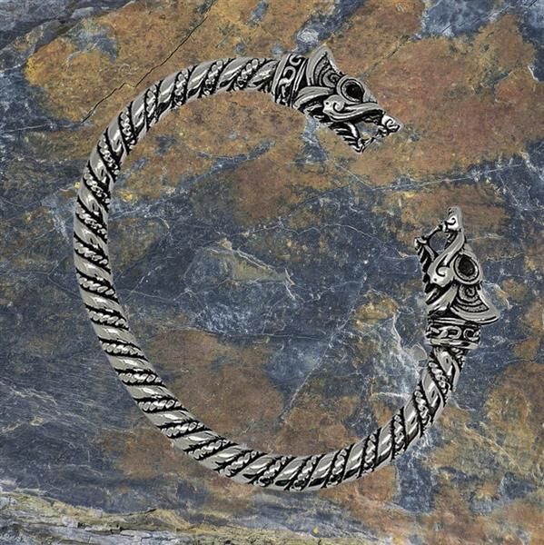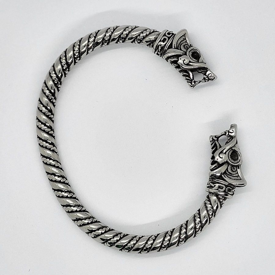 Armreif Wikinger Eidring mit Fenris Wölfen massiv Edelstahl D: 8,7 cm Armband