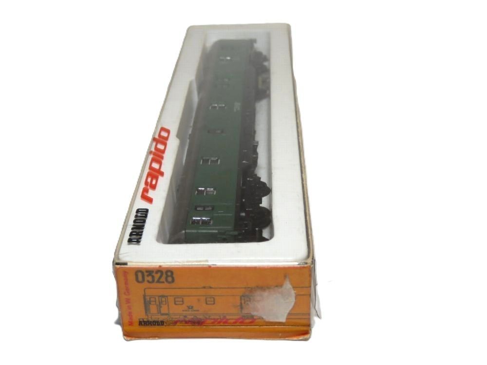 Hersteller: Arnold Artikelnummer: 0328 Artikel: Bahnpostwagen - Gepäckwagen Wagennummer: 50 80 00-43 093-6 DBP Farbe: Grün Länge: 165 mm NEM-Schacht: Nein Maßstab: 1:160 Originalverpackung: Ja (Da die Verpackung nicht Bestandteil dieses Artikels ist, wird der Zustand nicht näher beschrieben) Die Fot