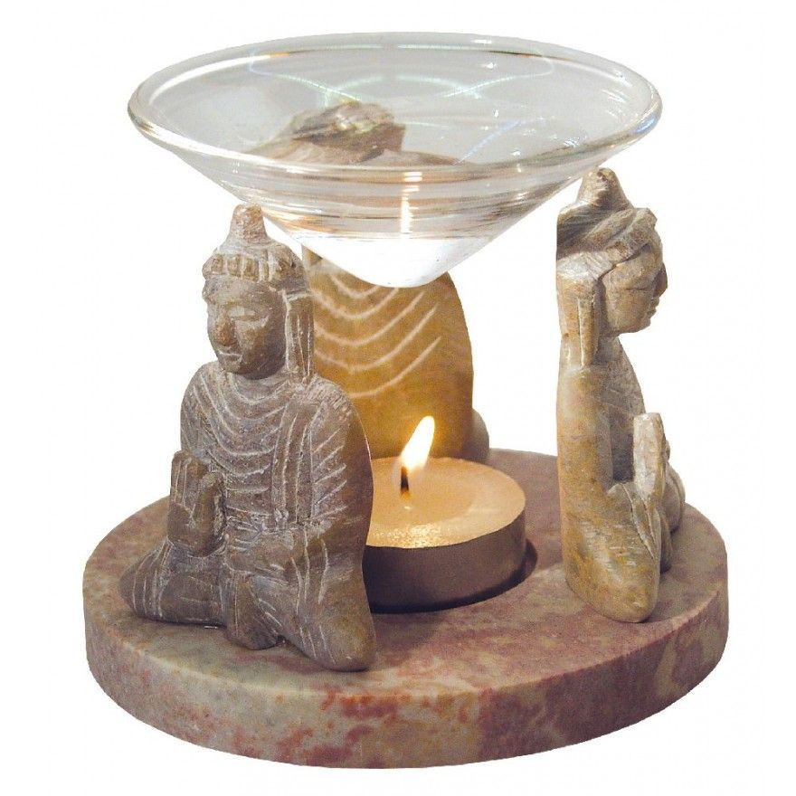 Saraswati Aromalampe 3 Buddhas Speckstein braun 10 x 9 cm Duftlampe Öllampe Diffuser
