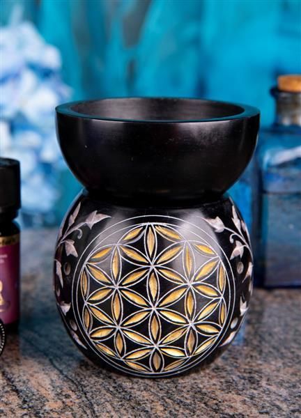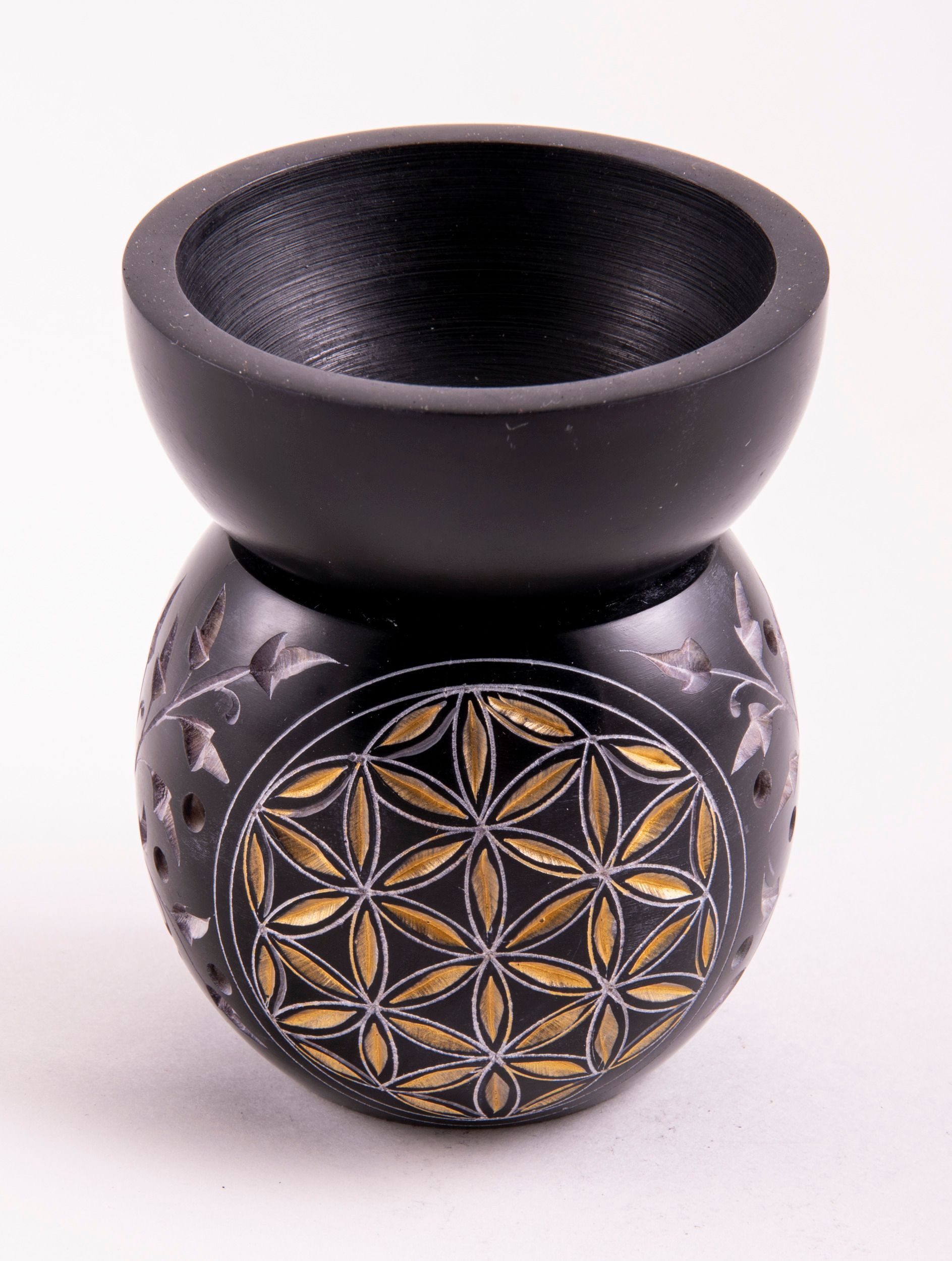 Aromalampe BLUME DES LEBENS Speckstein H: 10 cm Duftlampe Öllampe Diffusor
