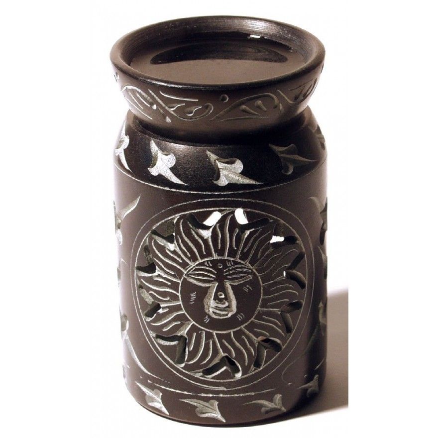 Saraswati Aromalampe Zylinder MIT SONNE Black Stone 6 x 10 cm Duftlampe Öllampe Diffuser