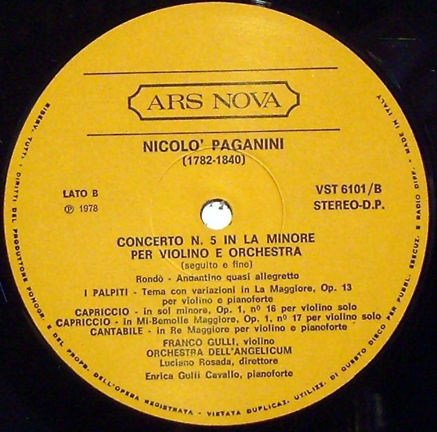 Ars Nova VST 6101 STEREO - Niccolò Paganini - Concerto N°5 In La Minor Per Vio