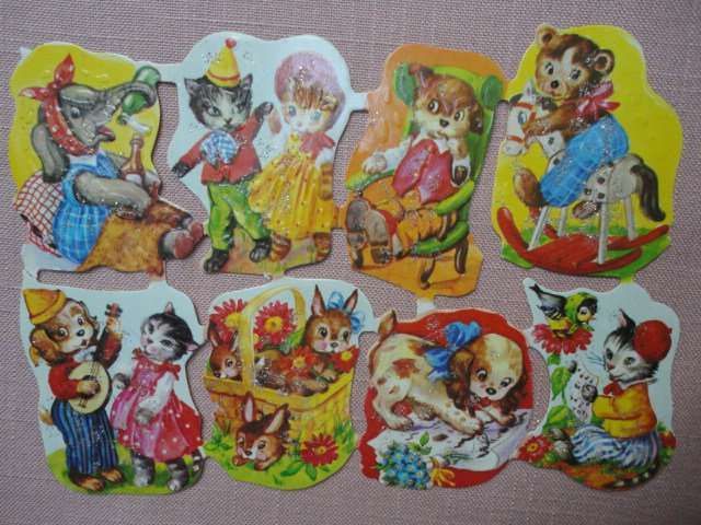 Arthur F Krüger alte Glanzbilderbogen Scraps Sheets Chromos süße Tiere 98/1