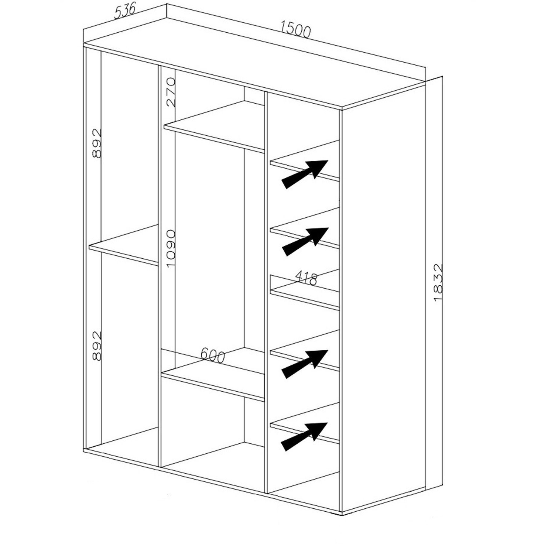 Arti 1B Dreitüriger Kleiderschrank mit Regalen und einer Stange, Flur, Wohnzimmer