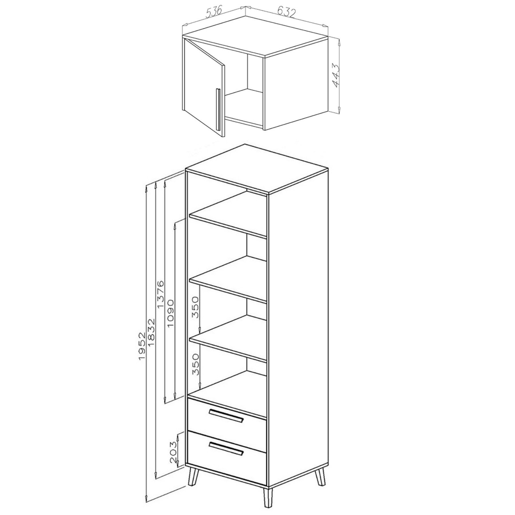 Arti 3N hoher Kleiderschrank eintüriges Schranke mit Schubladen Regalen, Jugendzimmer