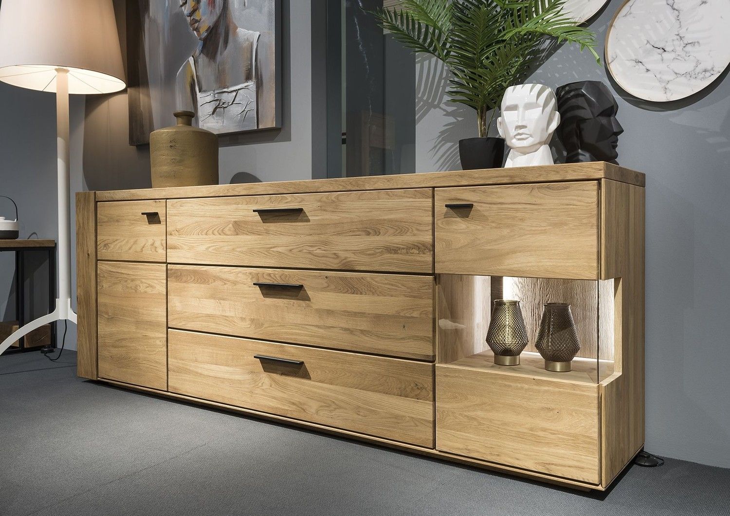 Artisan Sideboard Eiche Natur Metall Schwarz