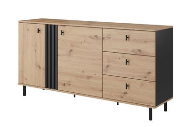 • Sideboard Kommode Wohnzimmer Esszimmer Anrichte in Eiche Artisan schwarz Ronson