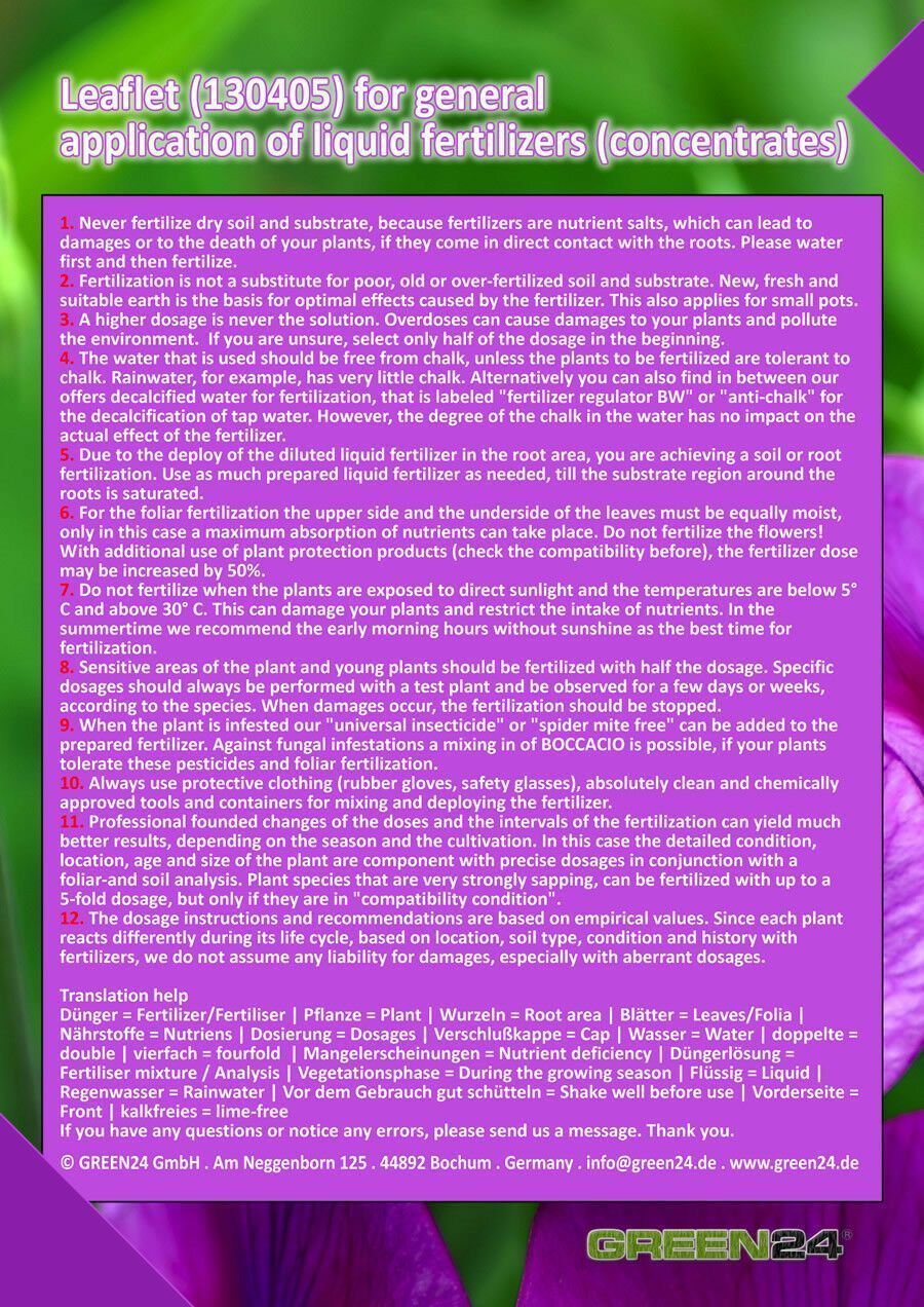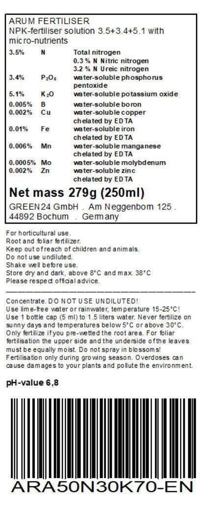Zum Shop Arum (Arum lilies) Liquid Fertilizer NPK - Root & Foliar Fertilizer 250ml Professional Liquid Fertilizer for: Arum (Arum lily) This food for plants belongs to the latest generation of fertilizers, for healthy and bright green leaves, stable branches, strong bud formation, balanced rooting,