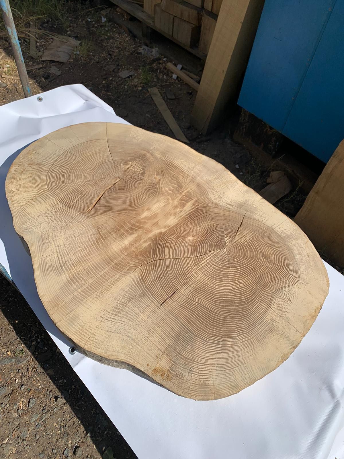 Schönes rohes Holz, ideal für jedes Ihrer Projekte! Ein einziges Stück Holz! Einzigartig! Hochwertiges massives Ascheholz! Ideal für einen schönen Tisch Abmessungen: Länge 92cm Breite 64cm Dicke Höhe 8cm Das Holzstück wurde mit einem Insektizid imprägniert!!! Wenn Sie an der Option mit Ölen und oder