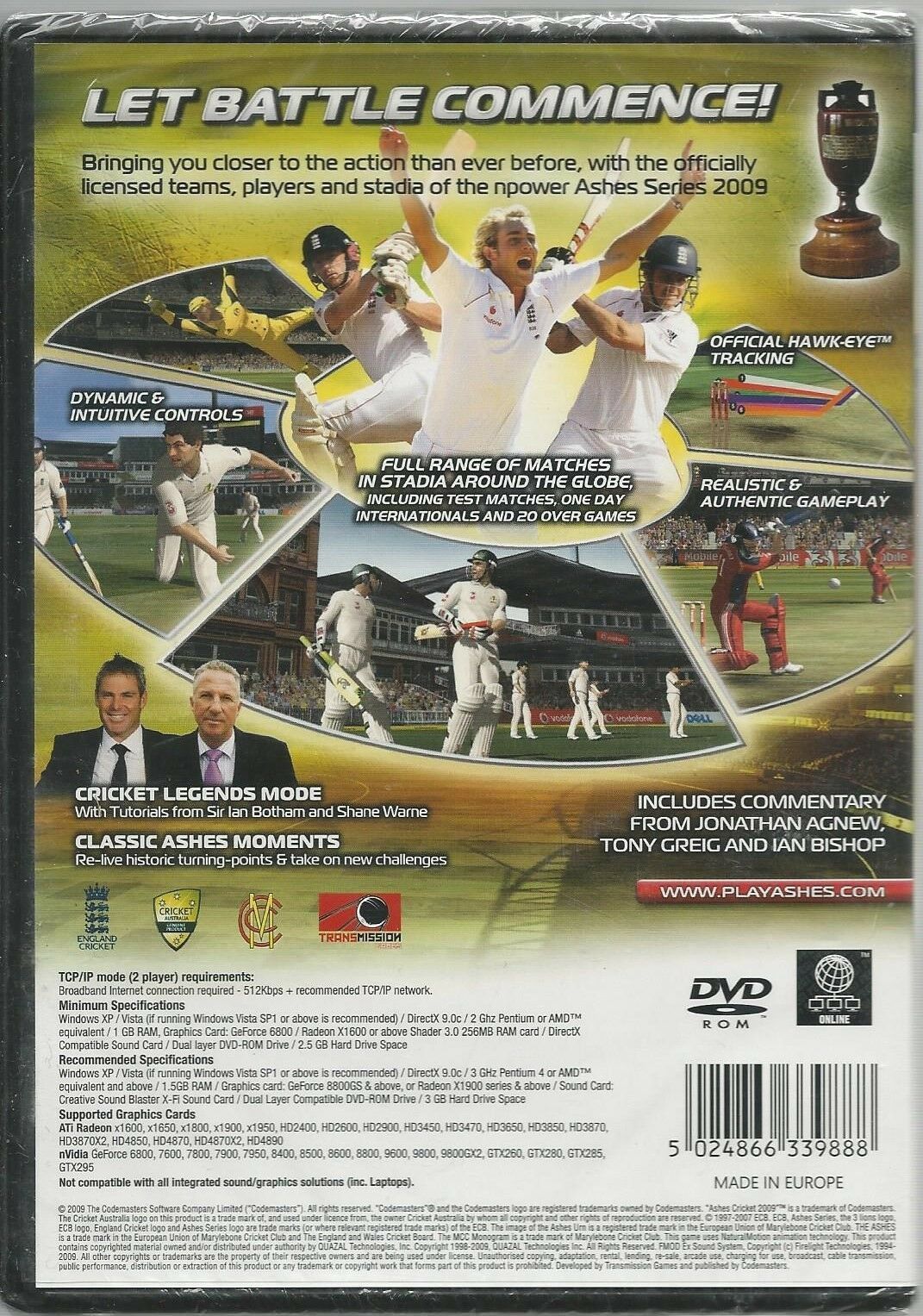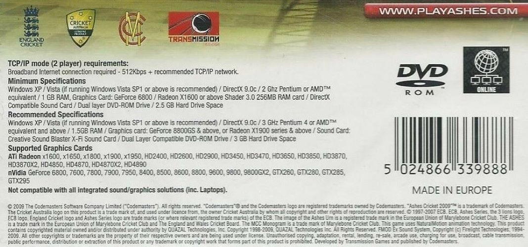 Ashes Cricket 2009 engl. Version (PC, 2009, DVD-Box) Neu & Verschweisst