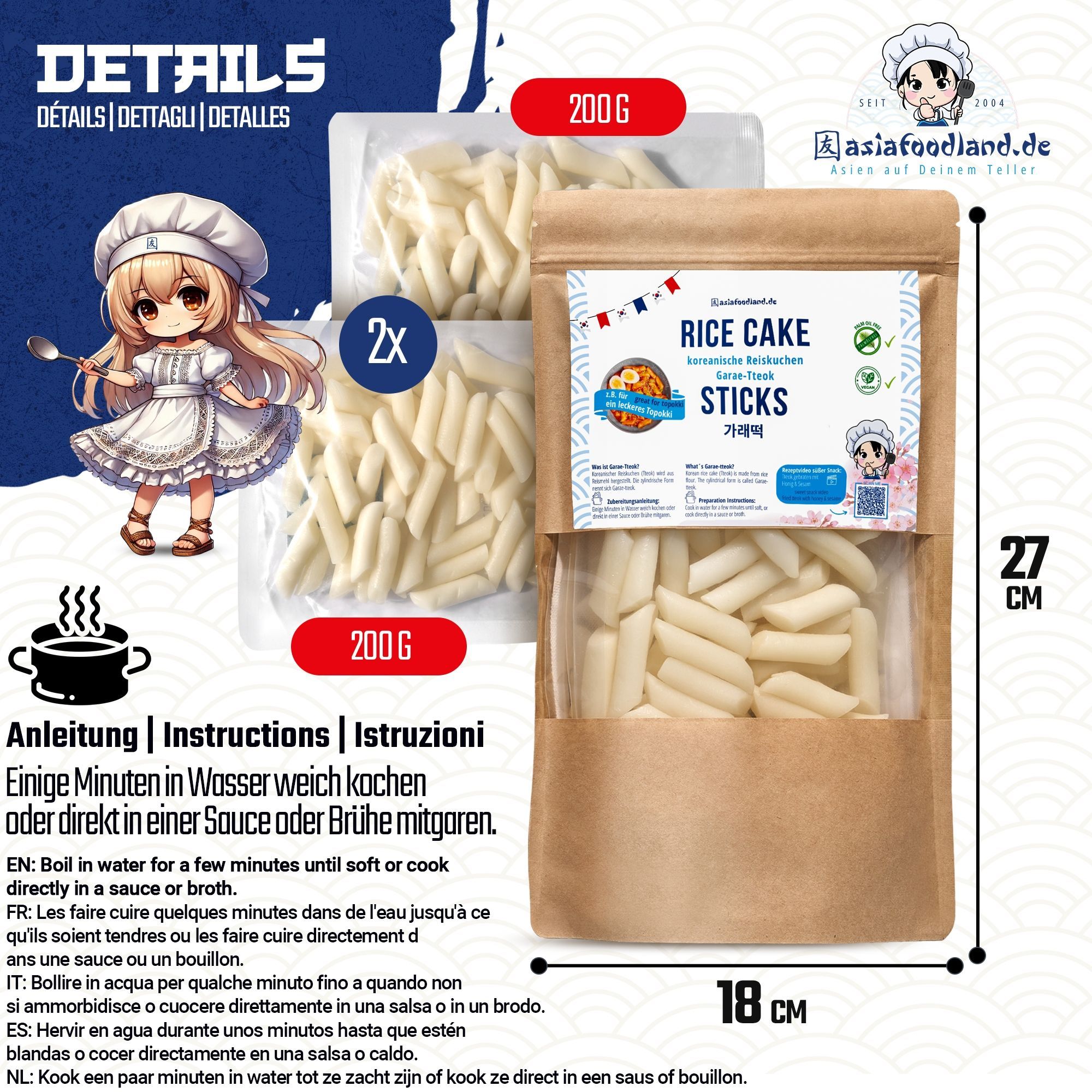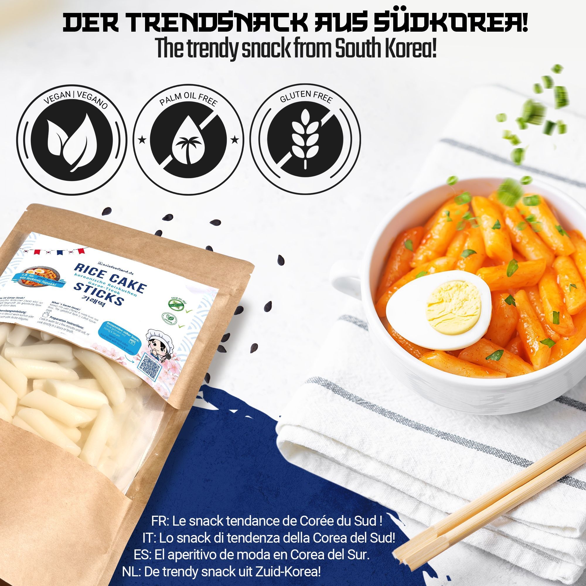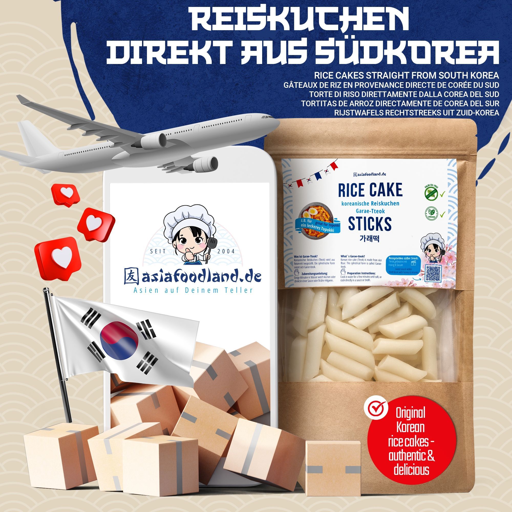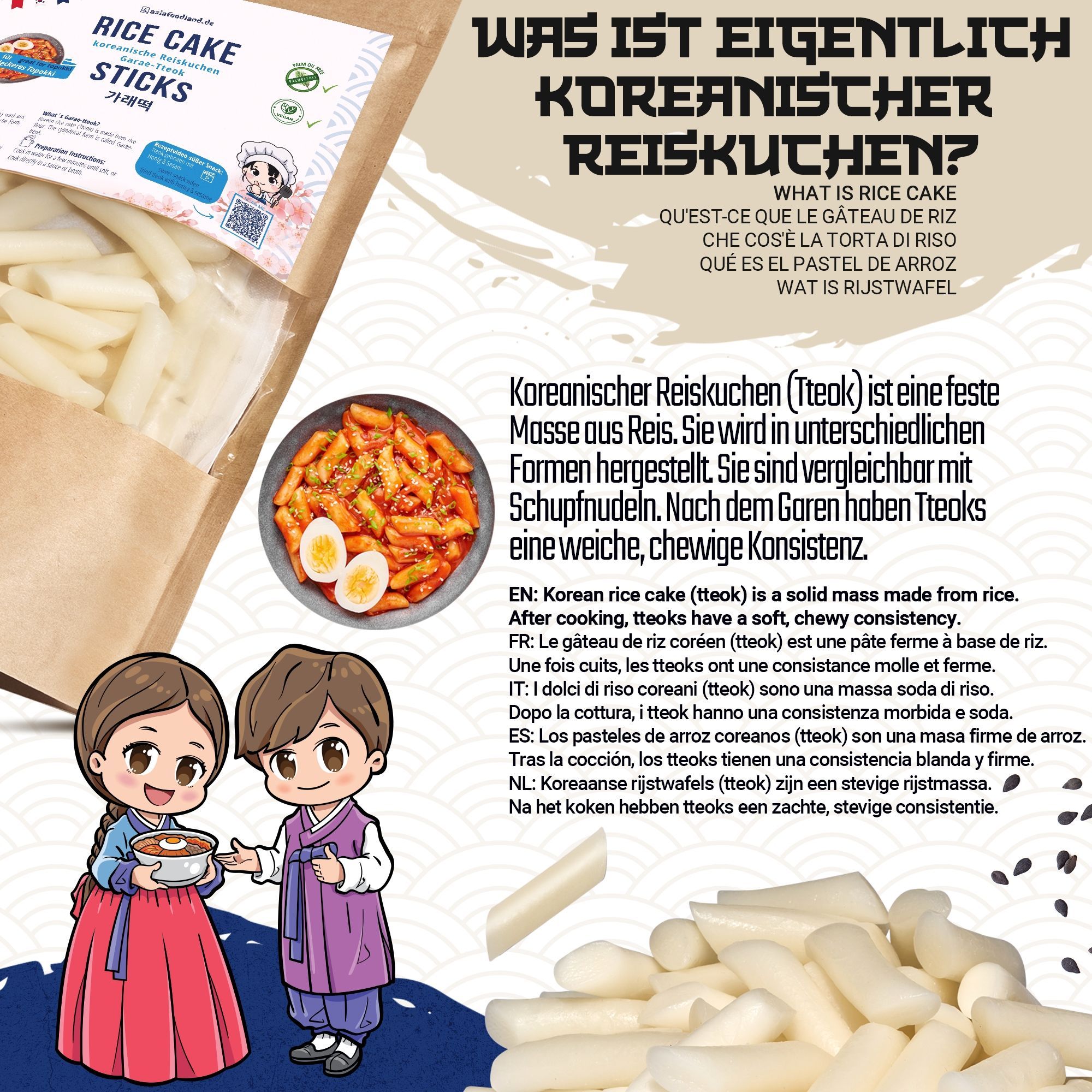 asiafoodland asiafoodland - Tteok koreanischer Reiskuchen für z.B. Tteok-bokki - 400g
