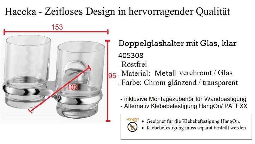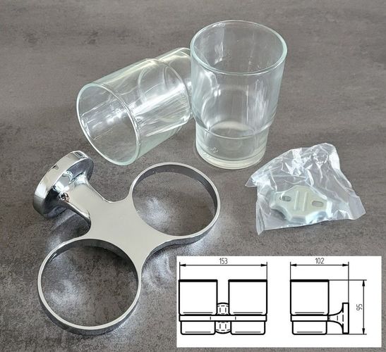 Haceka Aspen Doppelbecherhalter, Metall verchromt + Glas klar