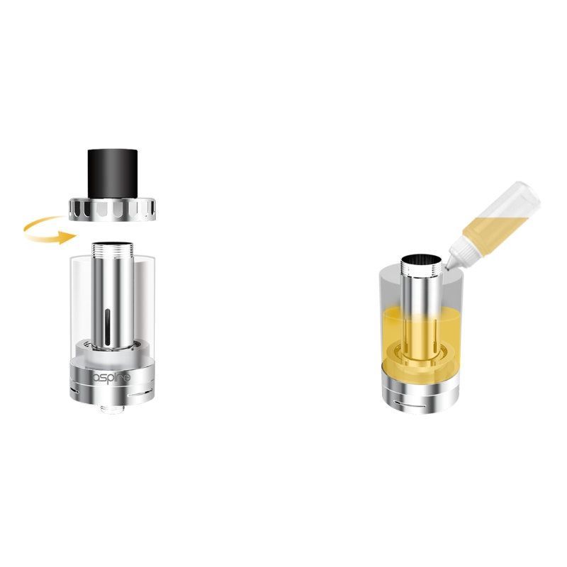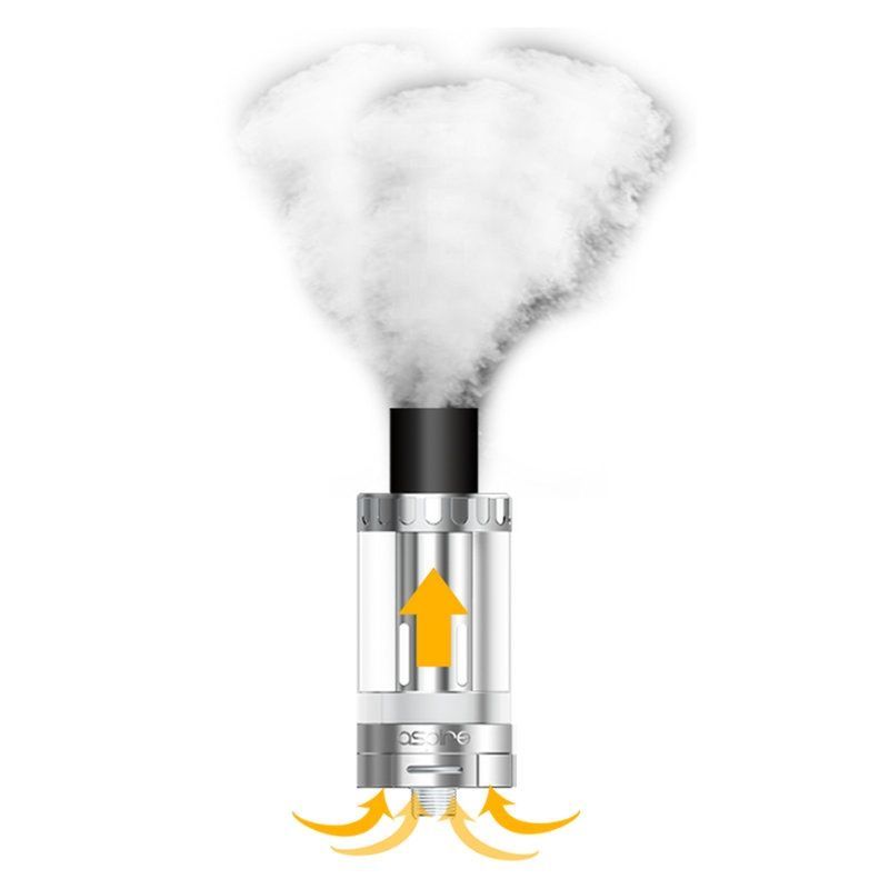 Der Aspire Cleito verfügt über ein Tankvolumen von 3,5 ml. Der Tank kann durch Abschrauben des Deckels (Top Cap) bequem von oben mit Liquid befüllt werden. Mit einer auf der Unterseite (Base Cap) angebrachten, einstellbaren Airflow-Control lässt sich die Luftzufuhr und die Dampfentwicklung individue