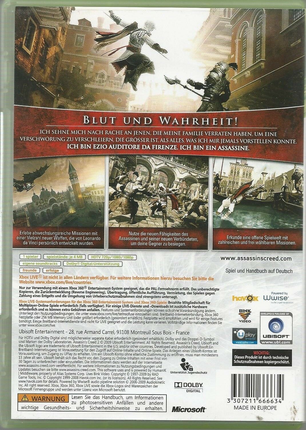 Spiel wie Abbildung - DVD Verpackung und Anleitung in sehr gutem Zustand - Nur ganz minimale Gebrauchsspuren auf der DVD Assassin’s Creed II ist der Nachfolger des Titels, der als schnellst verkaufte neue Marke in die Videospiel-Geschichte einging. Der mit Spannung erwartete Nachfolger präsent... Mehr