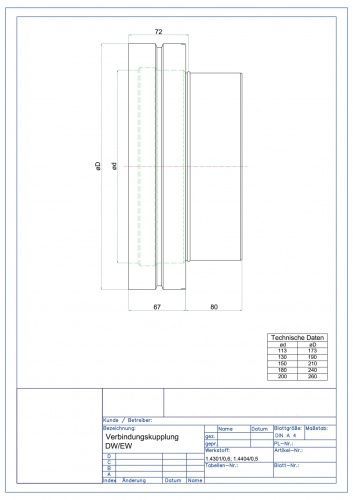Astec Edelstahlschornstein Verbindungskupplung gemufft 155 Innen DW/ EW Doppelwan