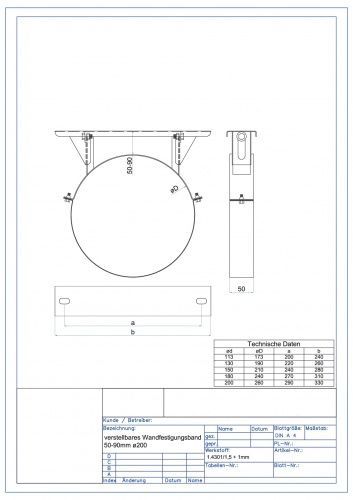 ASTEC verstellbares Wandbefestigungsband 50-90 mm Edelstahl Schornstein Sanierun
