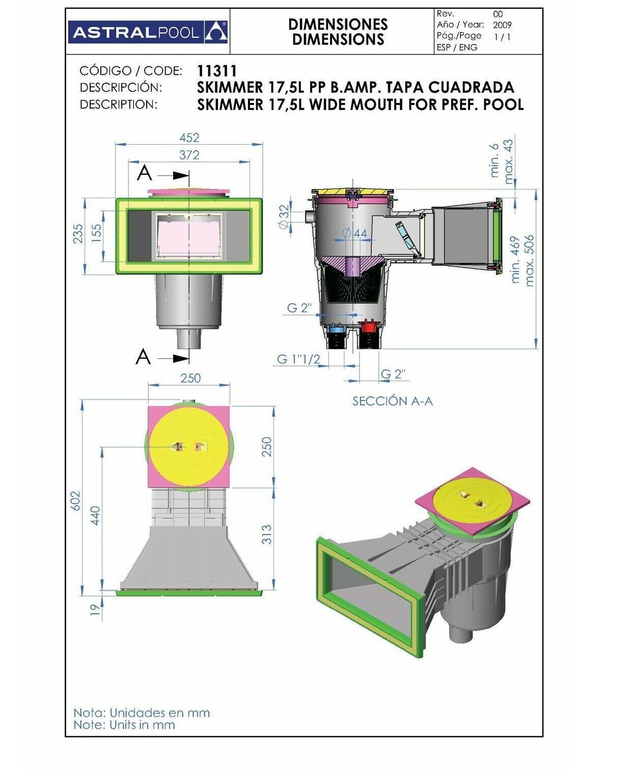 AstralPool Astral Pool Oberflächenabsauger 17,5 Liter Breitmaulskimmer 435mm beige