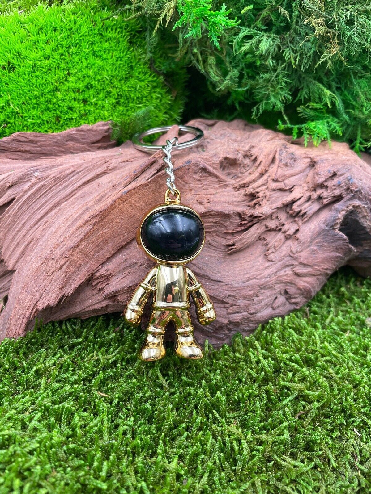Astronaut Raumfahrer Chrom Schlüsselanhänger aus Metall Glücksbringer Golden
