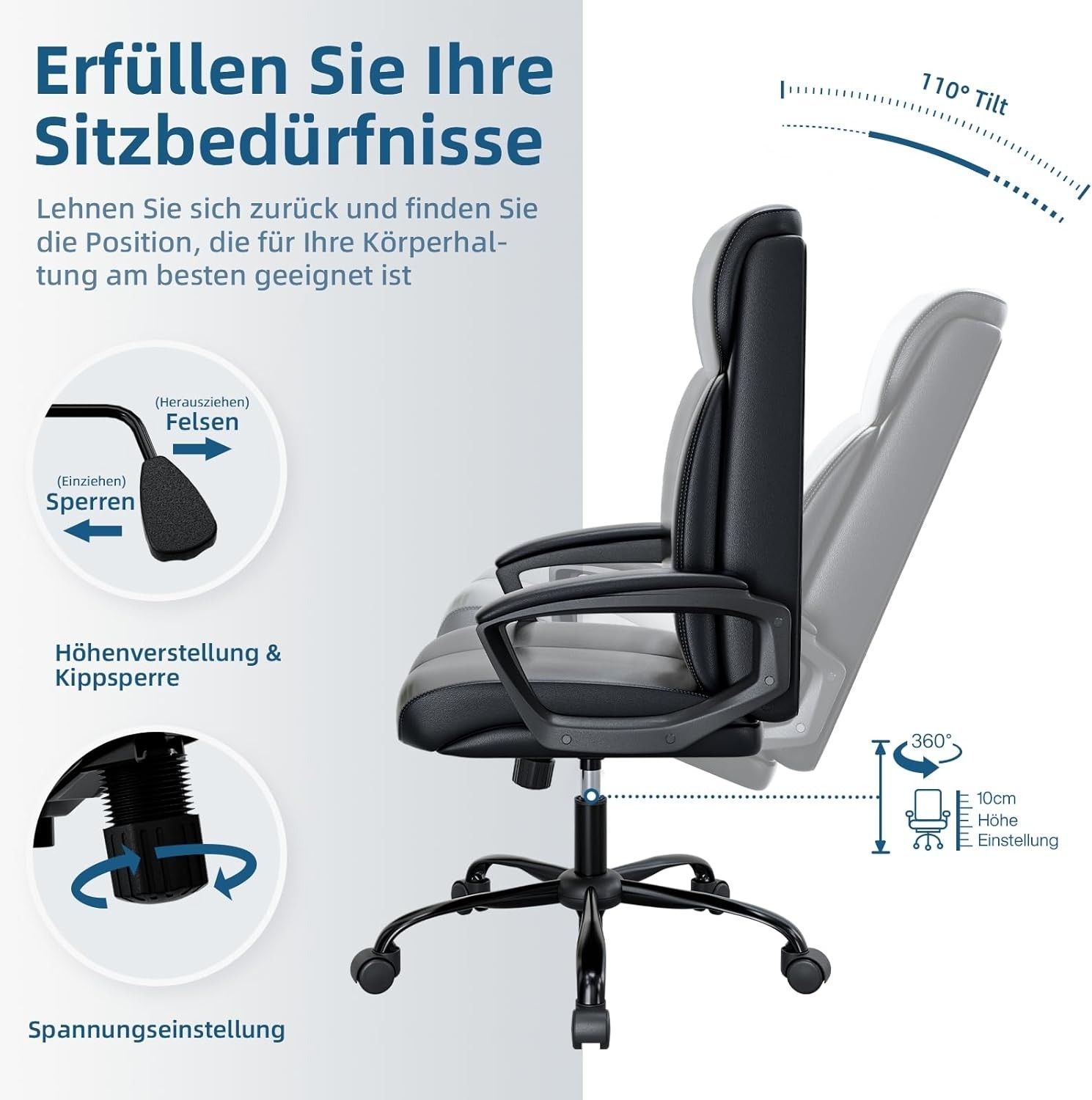 Asukale Bürostuhl Ergonomisch Schreibtisch Chefsessel Kopfstütze Wippfunktion
