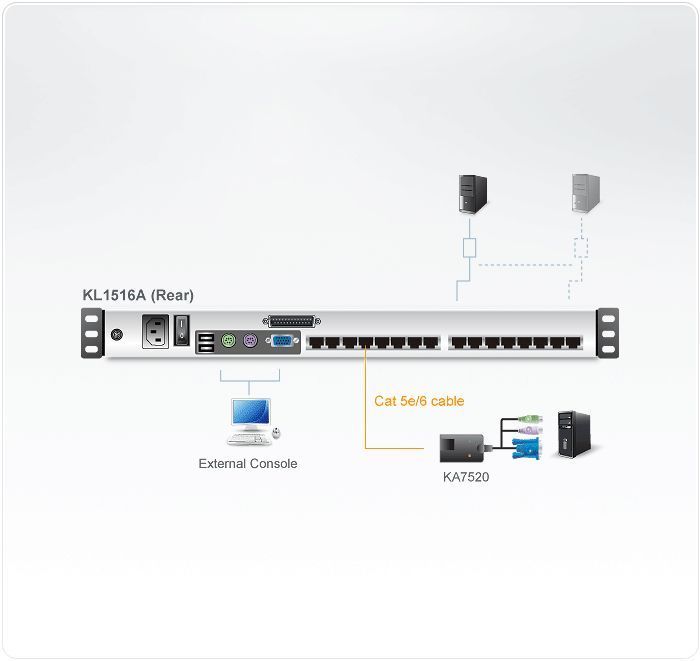 ATEN KL1516AM KVM-Switch 16-fach mit 17Zoll-Display, 19Zoll-Rackmontage, DE-Layo