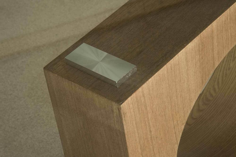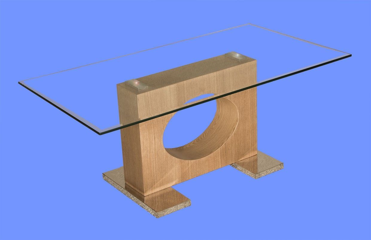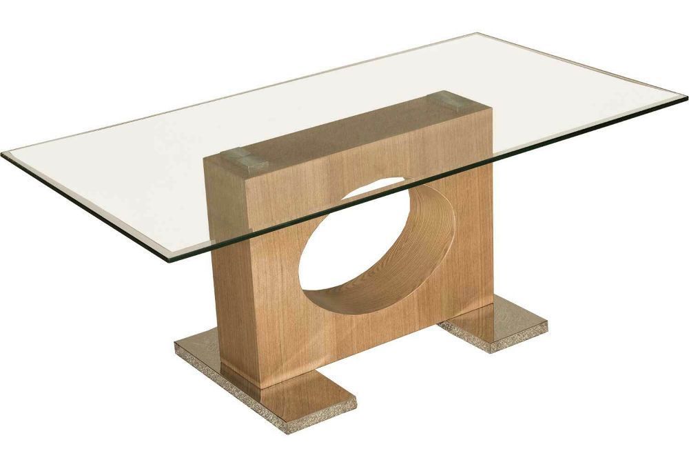 ATL-H Couchtisch Klarglas 110x60x44cm Holzwange Sockel Edelstahl Bestpreis ab Werk