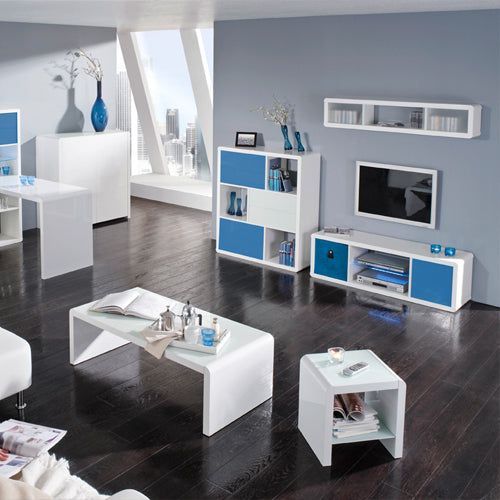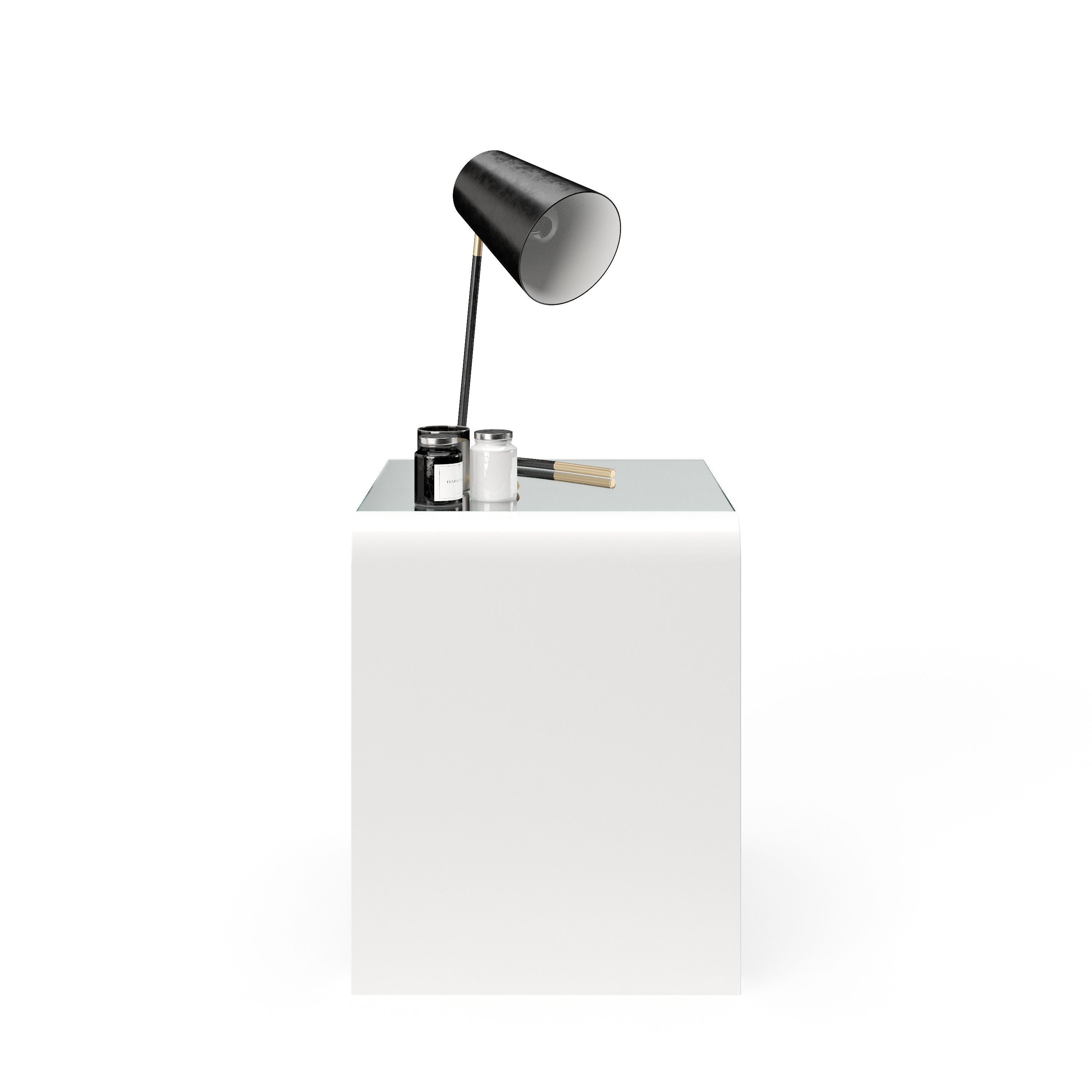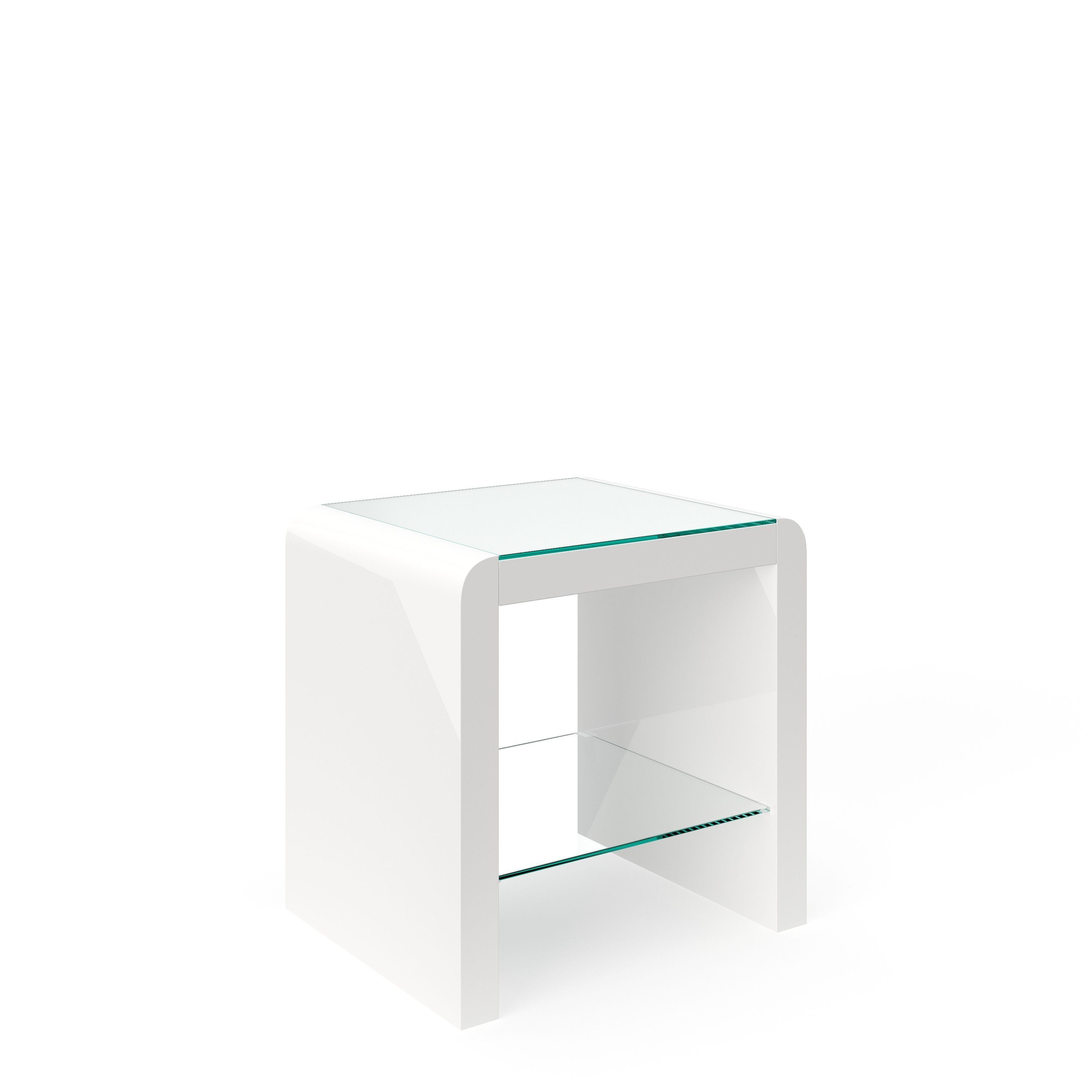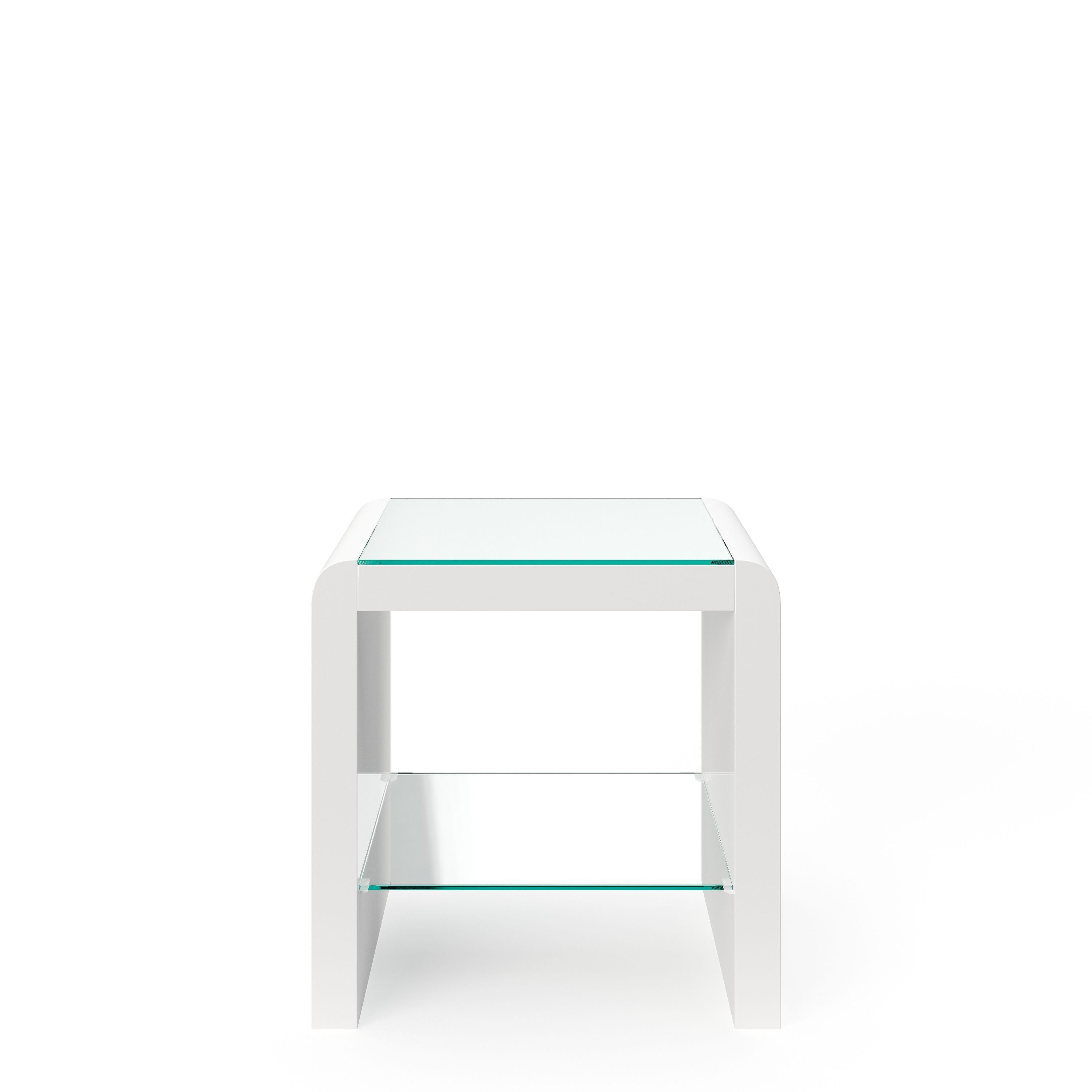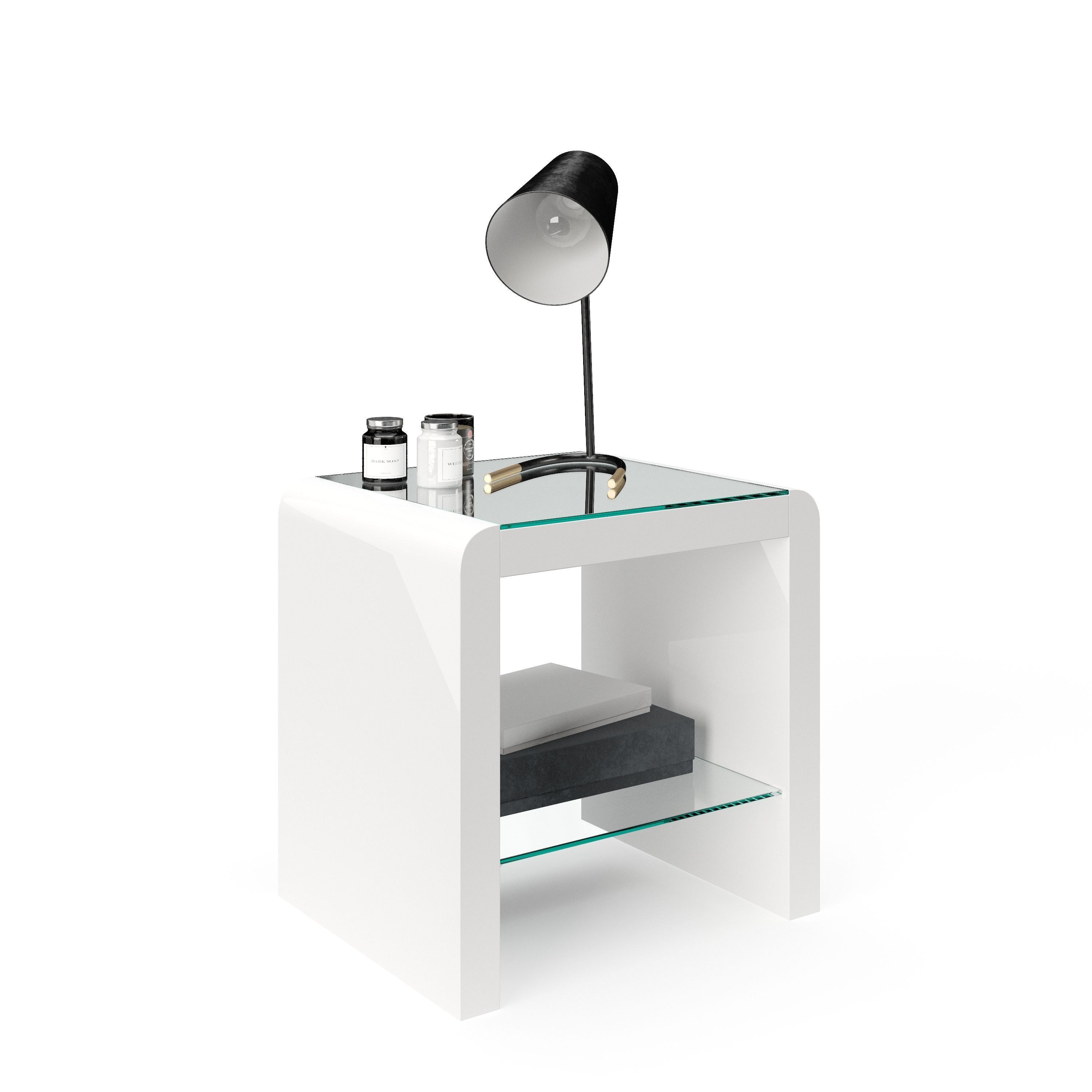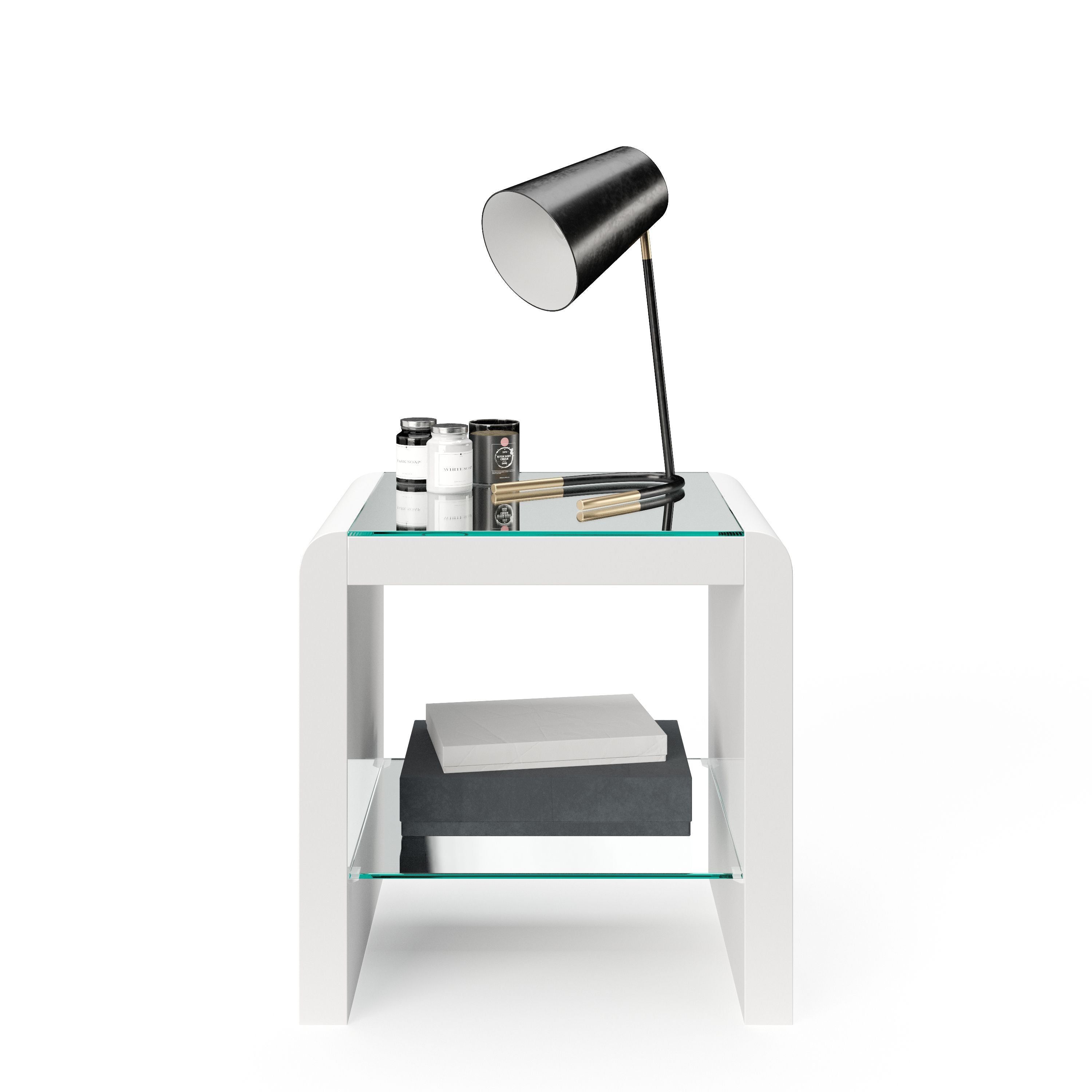 Atlanta - Beistelltisch, Nachttisch, Couchtisch mit Glasablage, hochglanz weiß