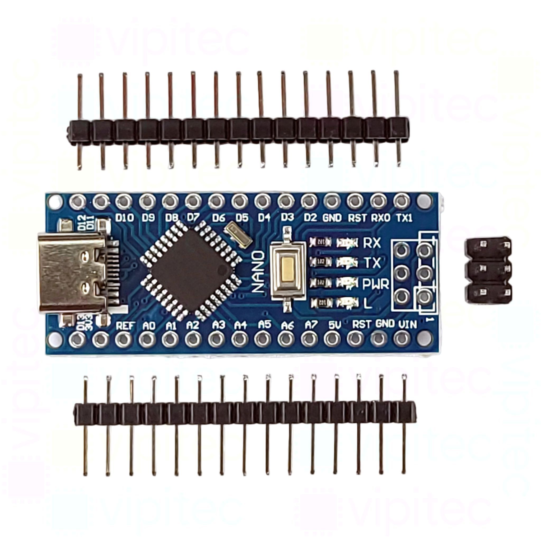 Warenkorb vipitec Shop Aktuelle Angebote Kontakt Komponenten > Multipacks Nano v3.0 Ent& 173;wicklungs& 173;board mit Arduino& 174;-kompatiblem Bootloader , mit USB-C Spezifikation: 5 V, 4..16 MHz, USB-C, FT232, ATmega328PB, 14 Digital-I Os, 8 Analog-Eingänge, 6 PWM-Ports Kompatibel zu USB-C Prog