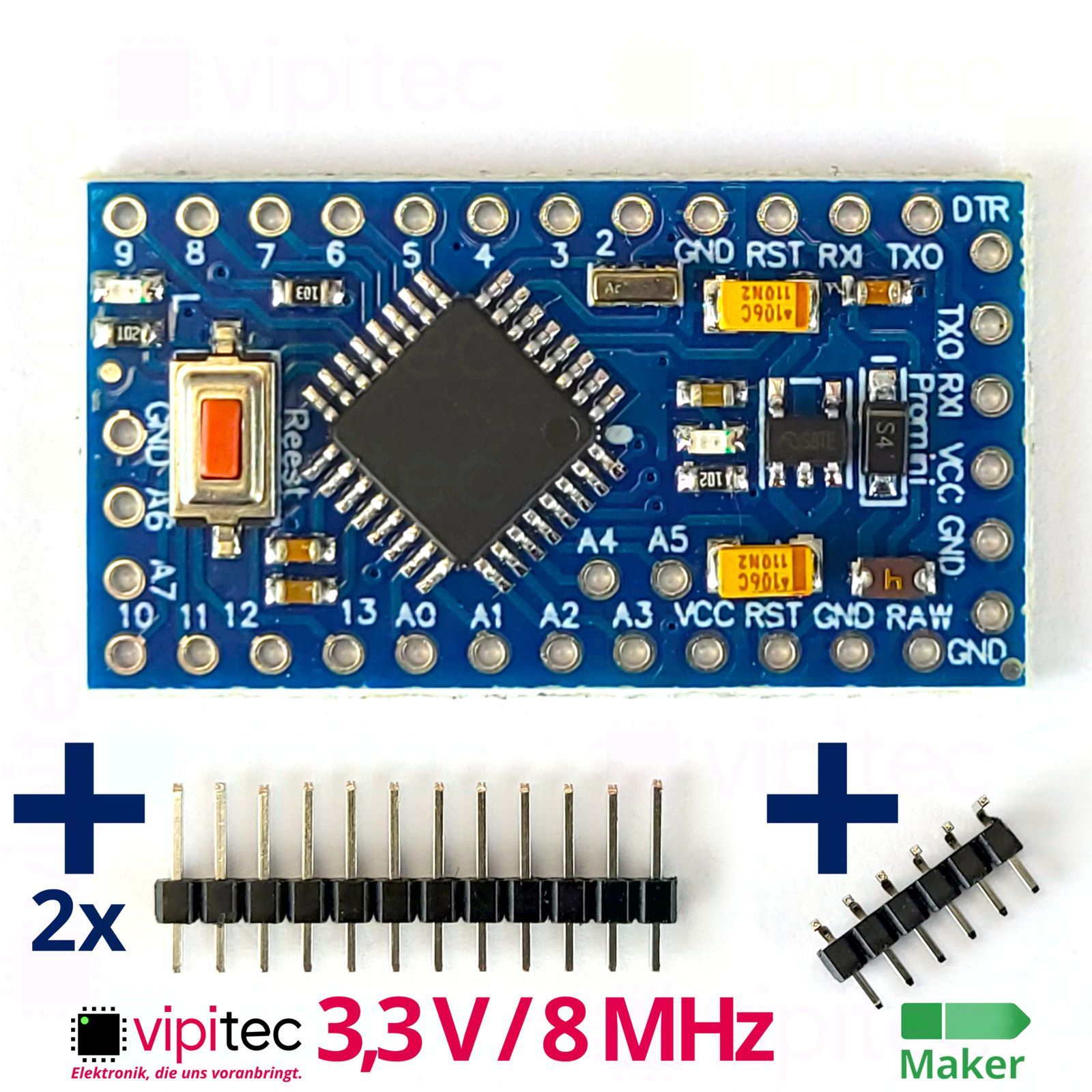 Warenkorb vipitec Shop Aktuelle Angebote Kontakt Komponenten > Entwicklungsplatinen ATmega328PB Ent& 173;wicklungs& 173;board im Pro-Mini-Layout Spezifikation: 3,3 V mit 8 MHz oder 5 V mit 16 MHz, ATmega328PB, 13 Digital-I Os, 6 Analog-Pins, 6 PWM-Ports In unserem Shop finden Sie weitere Entwickl
