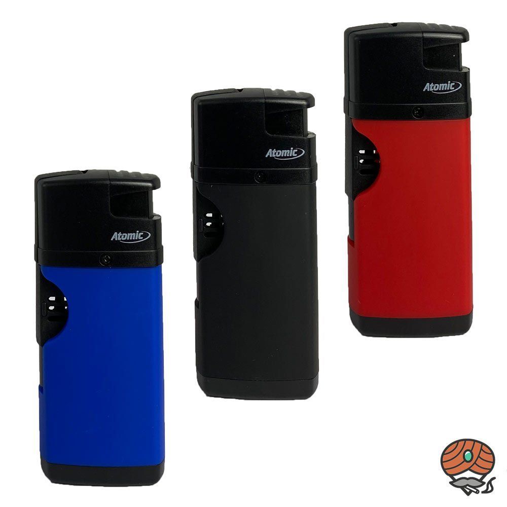 Atomic Atomic Elektronik Feuerzeug, Blaue Jetflamme, schwarz/rot/blau 1x nicht wählbar