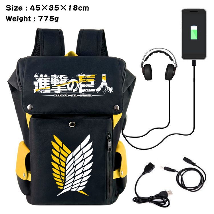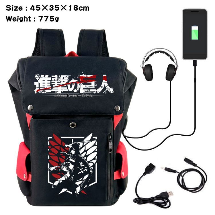 Attack on Titan USB Flip-Cover Rucksack Eren Damen Backpace Eimertasche 45x35x18