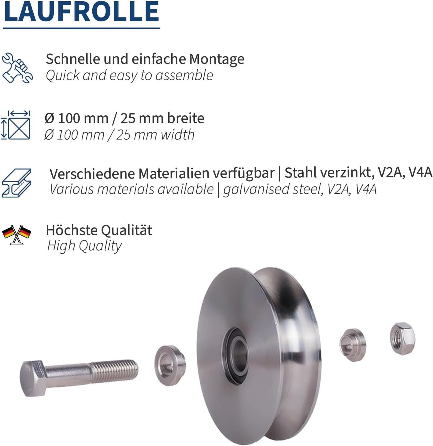 ATTAS Edelstahl V4ALaufrollen 100mm Schwerlast Schiebetür Schiene Tragkraft 420kg