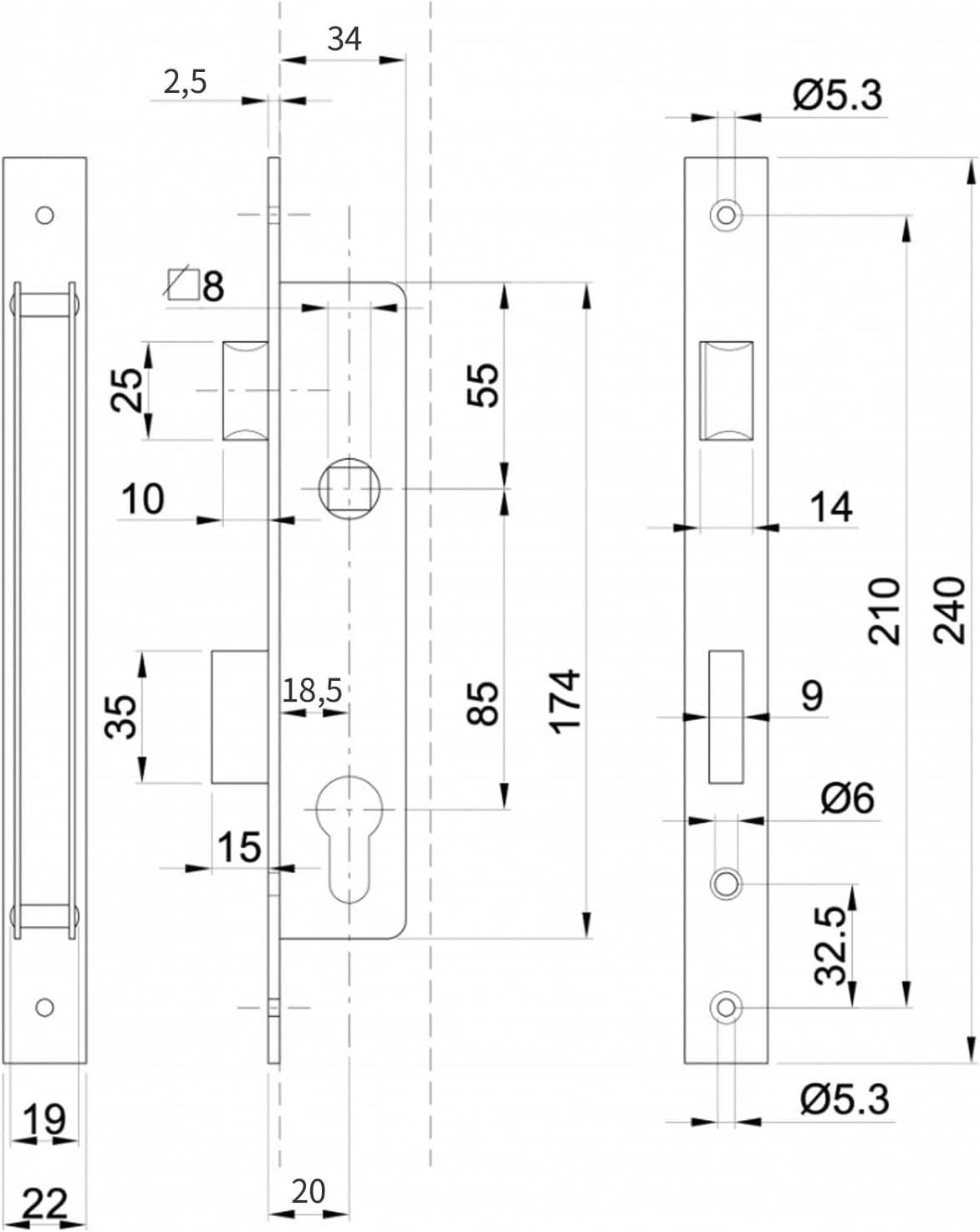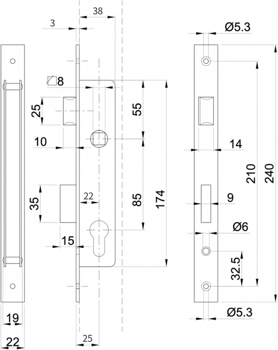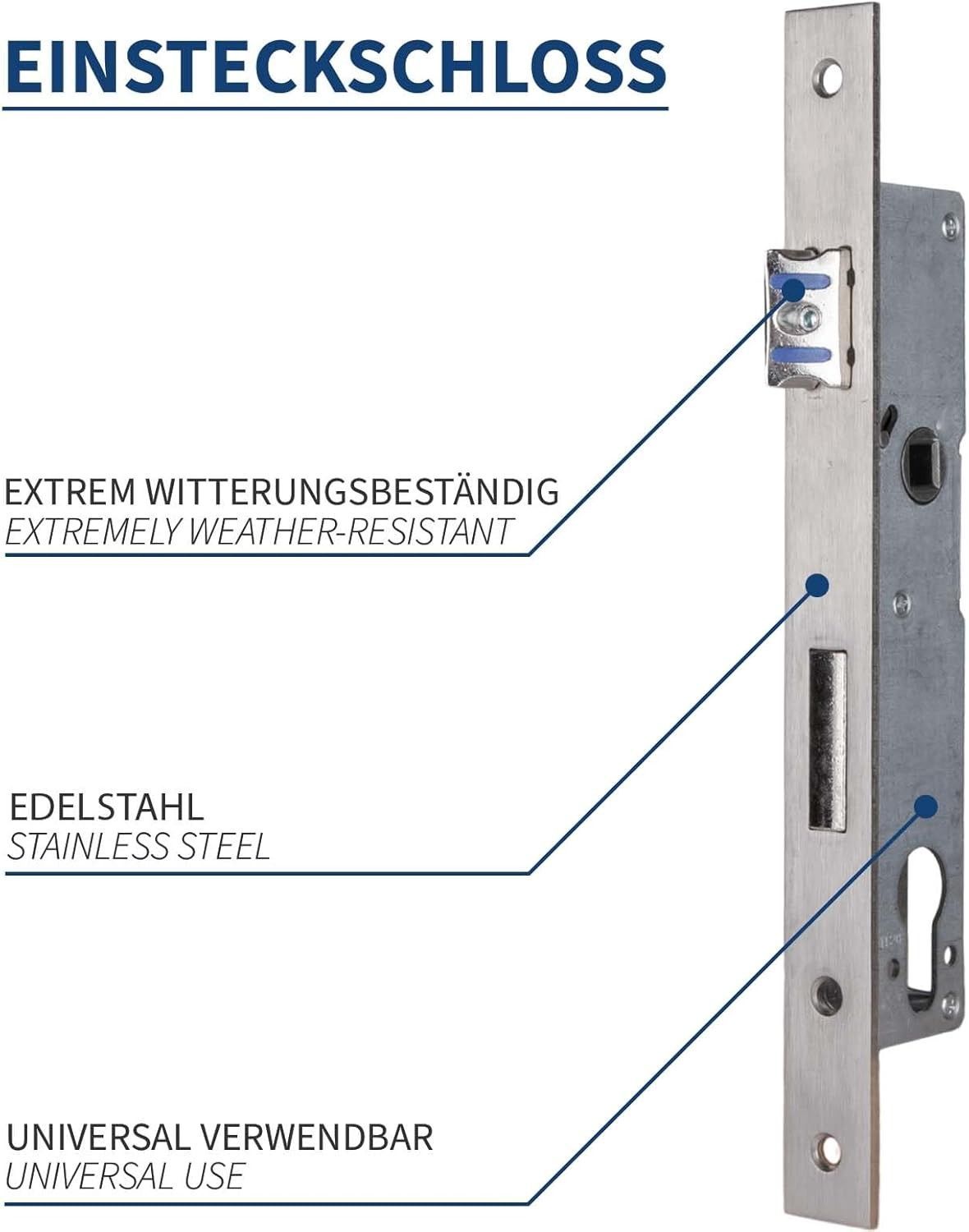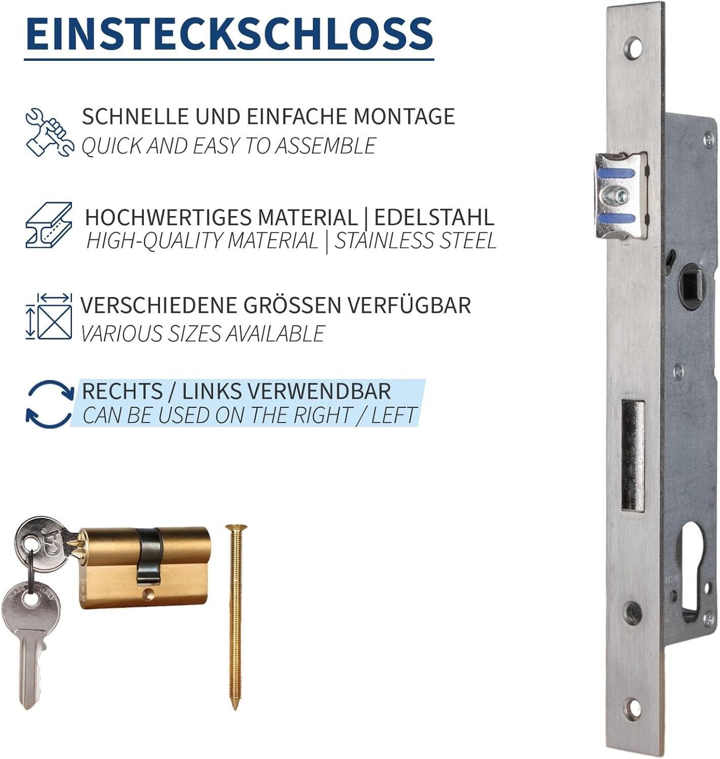 ATTAS Einsteckschloss inkl. Profilzylinder für Drehtore | Gartentore | Rahmenprofile