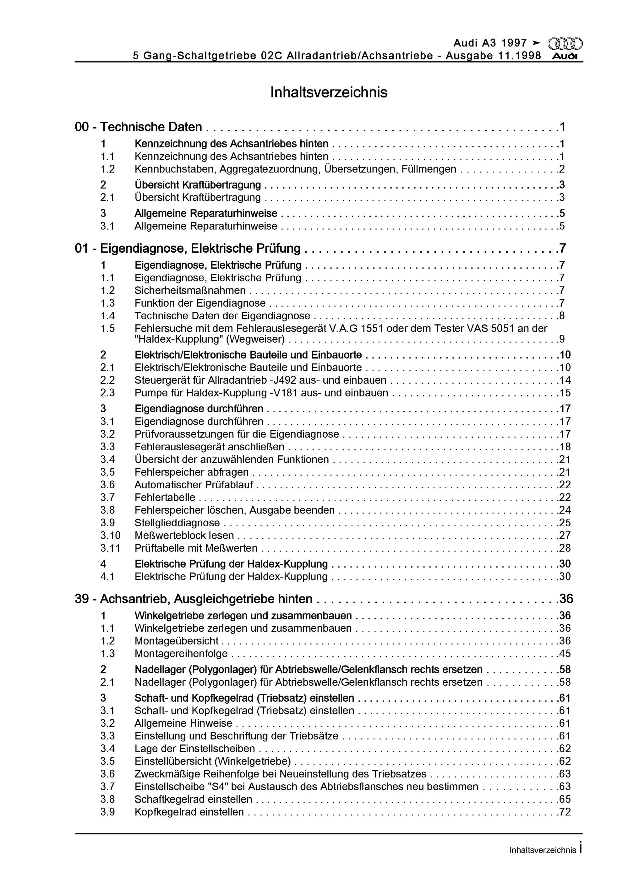 Audi AG Audi A3 8L (96-06) 5 Gang Schaltgetriebe 4WD AWD 02C Kupplung Reparaturanleitung