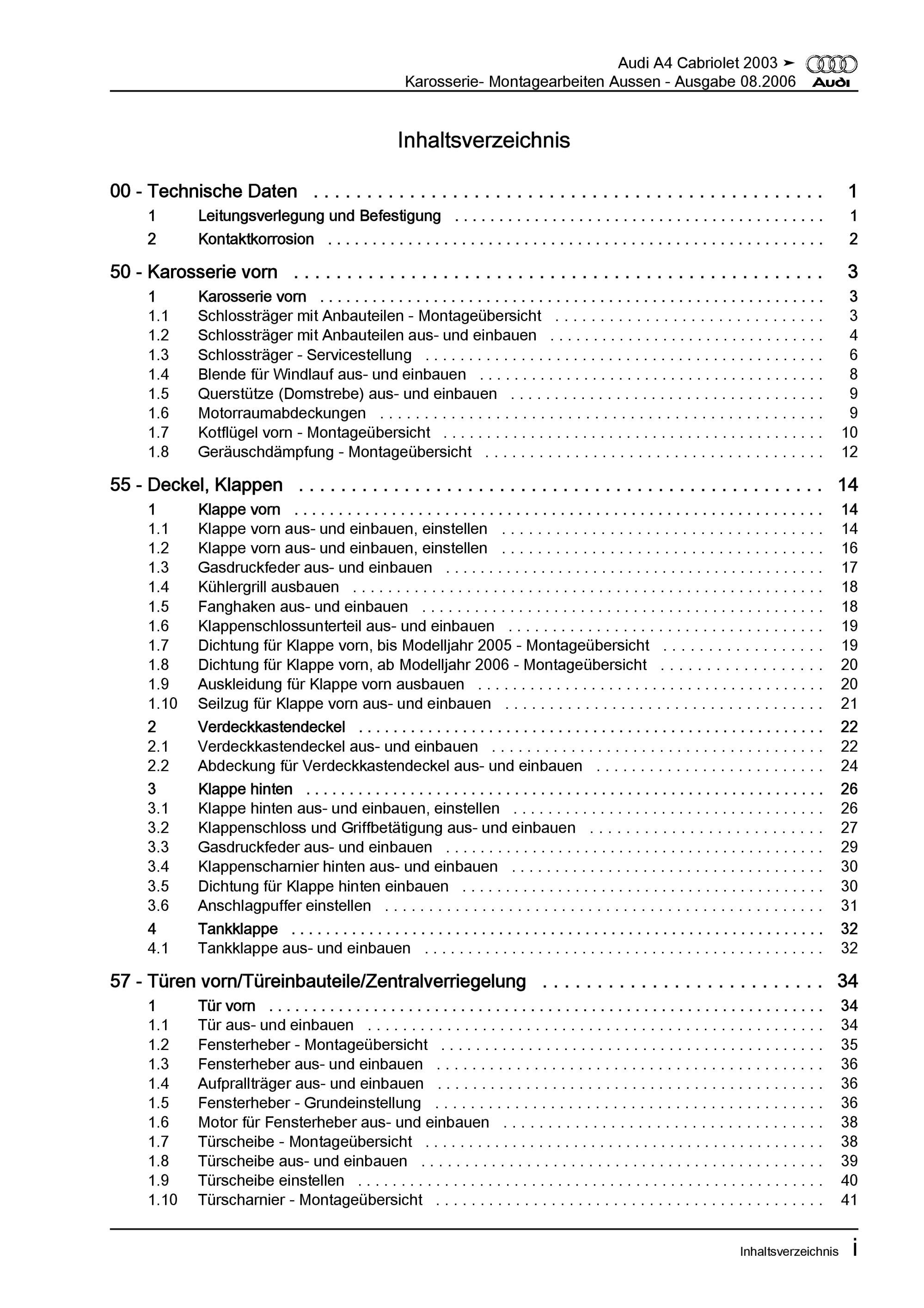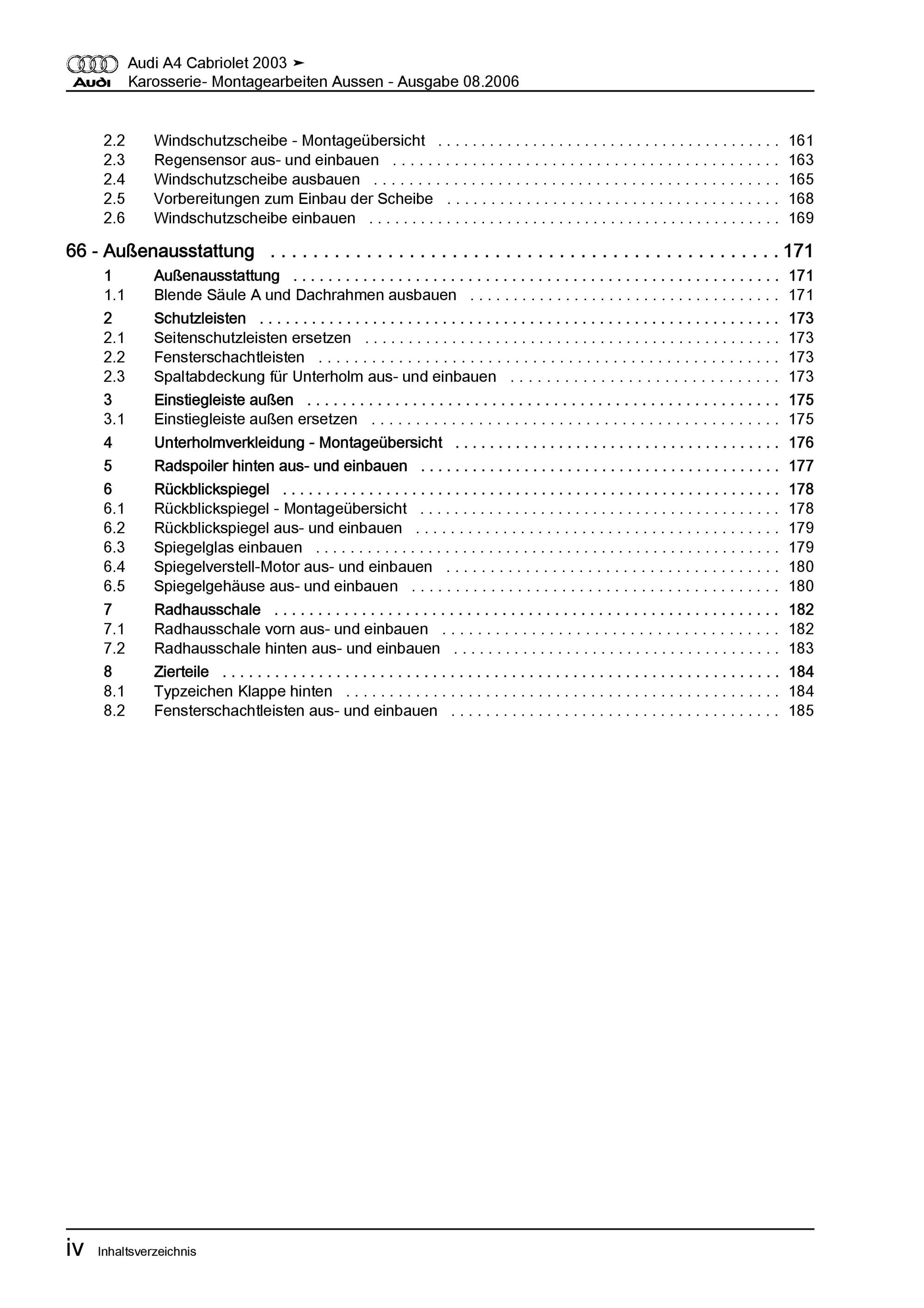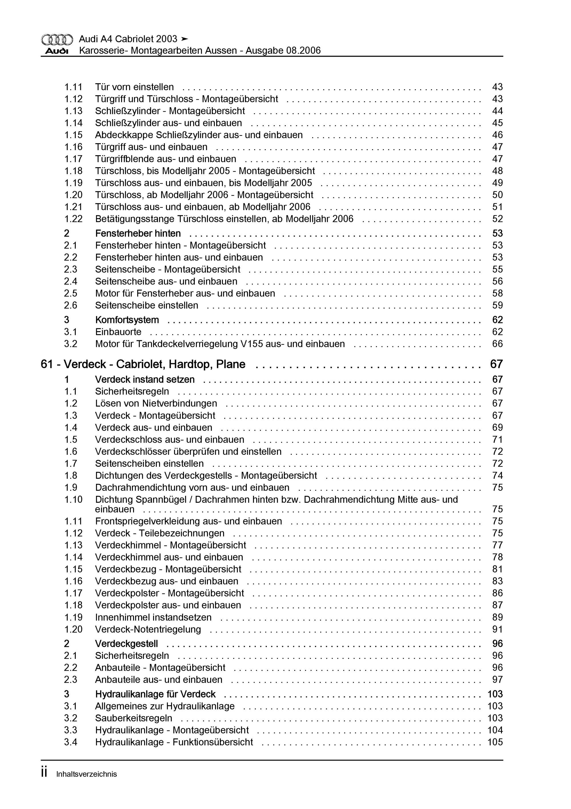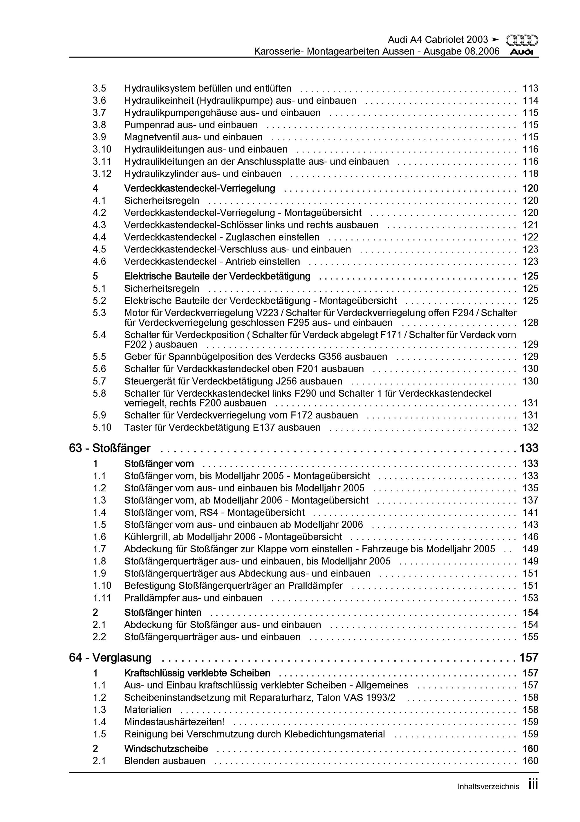 Audi AG Audi A4 Cabriolet 2002-2009 Karosserie Montagearbeiten Außen Reparaturanleitung