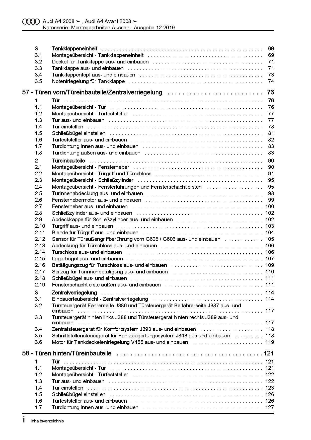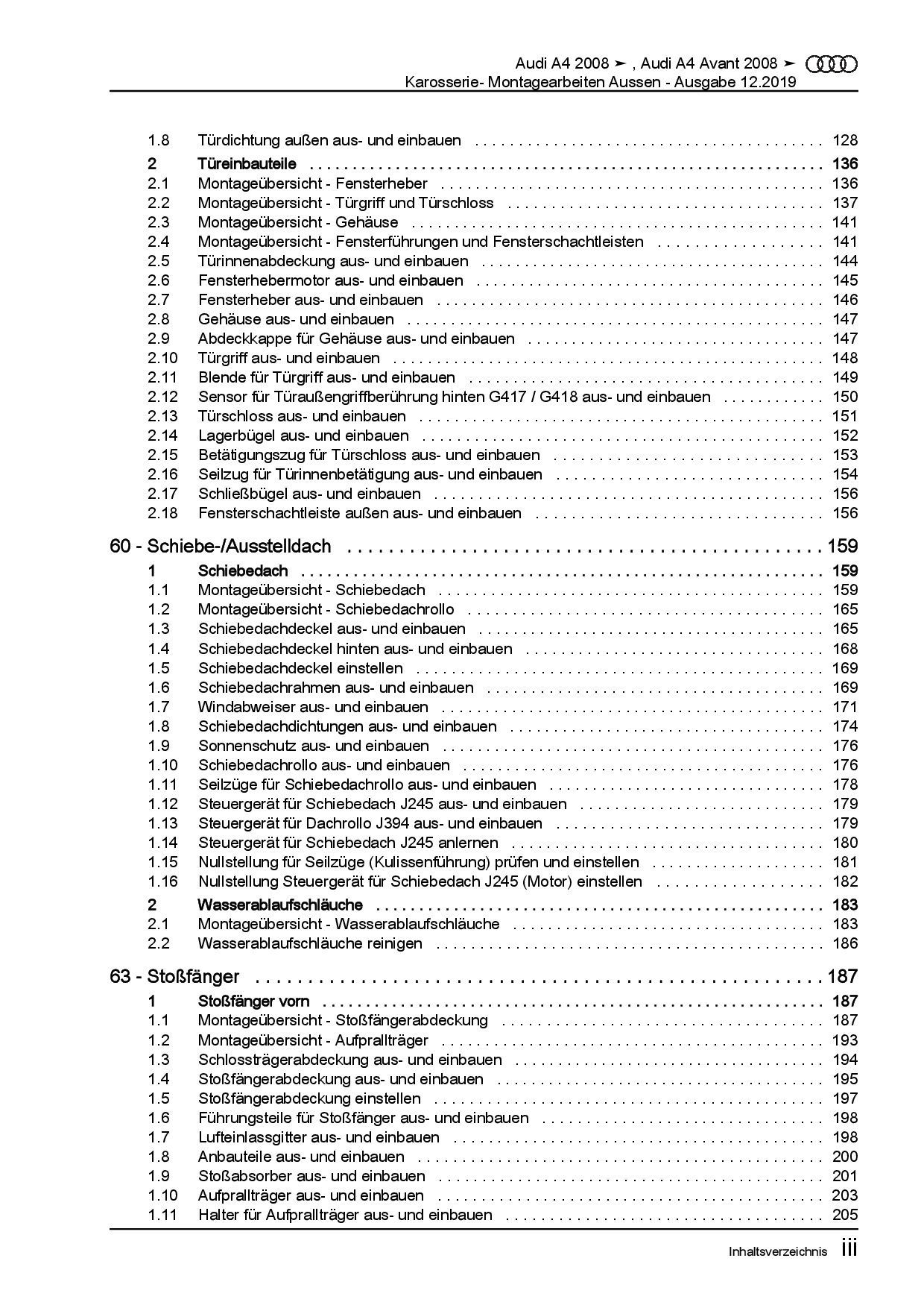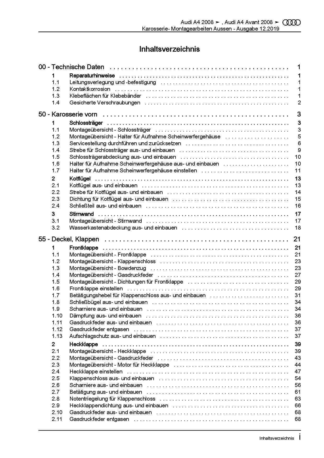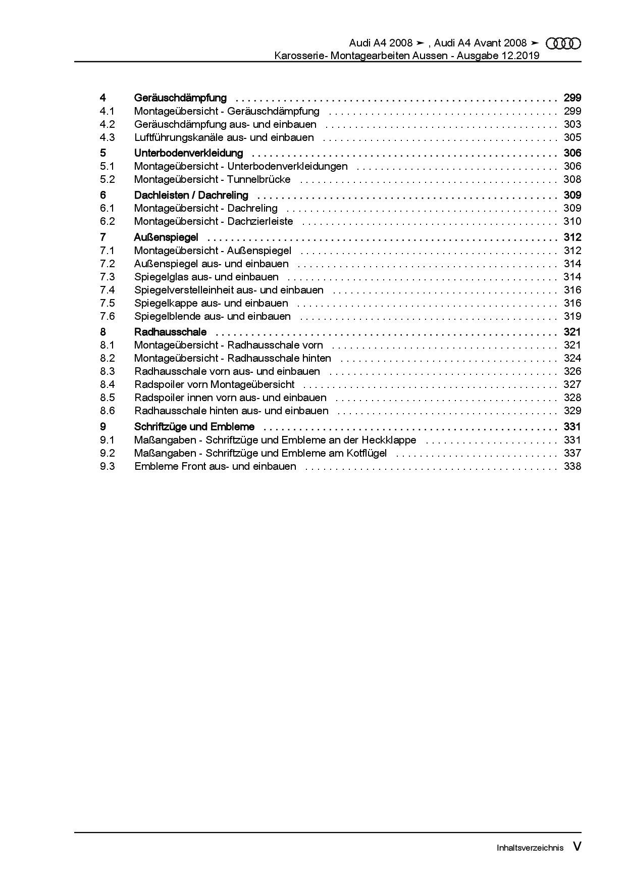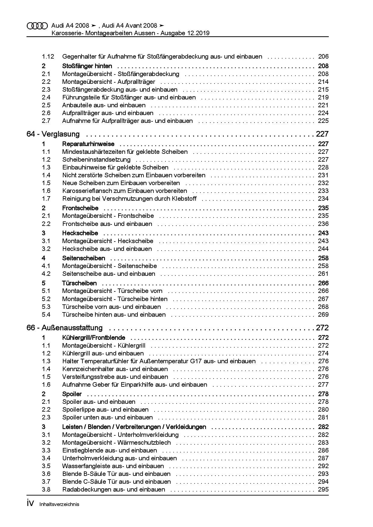 Audi AG Audi A4 Typ 8K 2007-2015 Karosserie Montagearbeiten Außen Reparaturanleitung