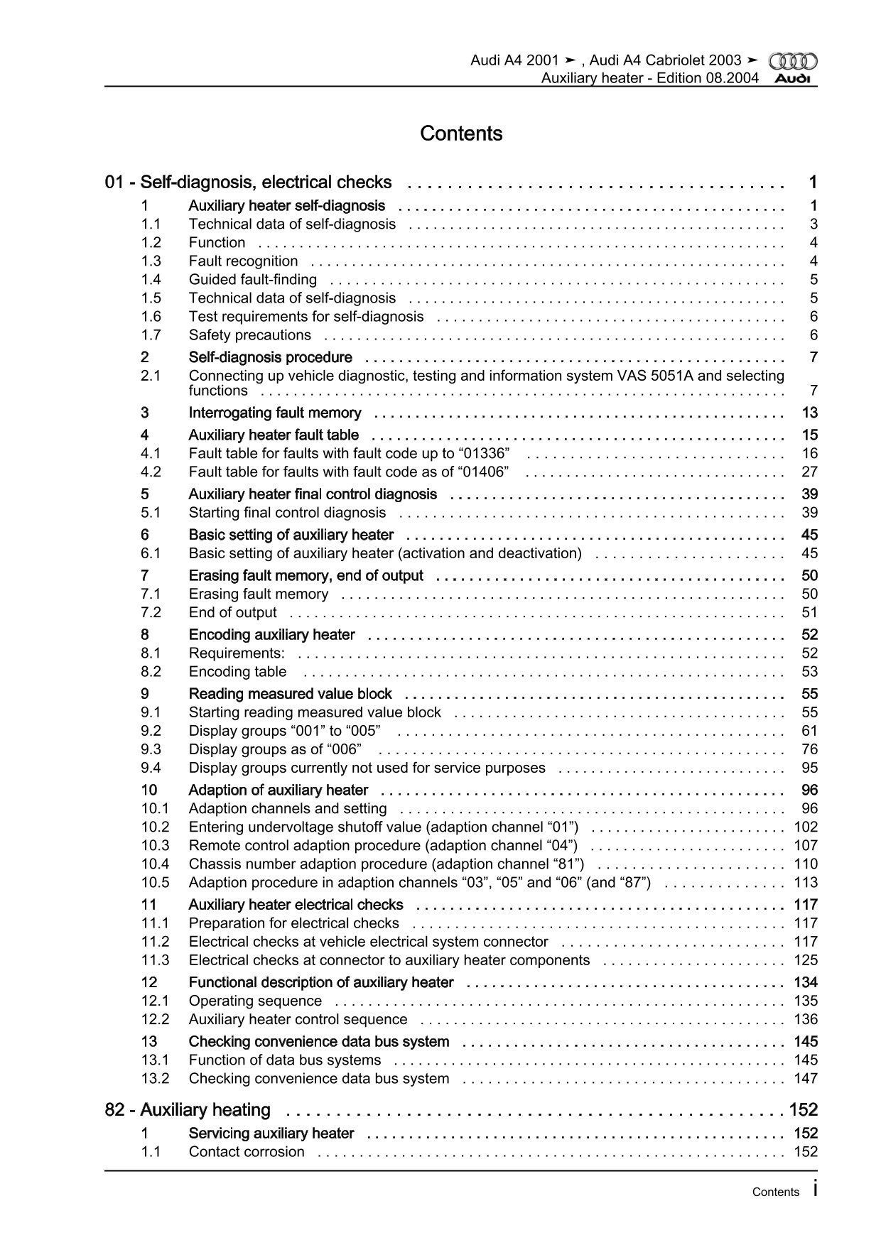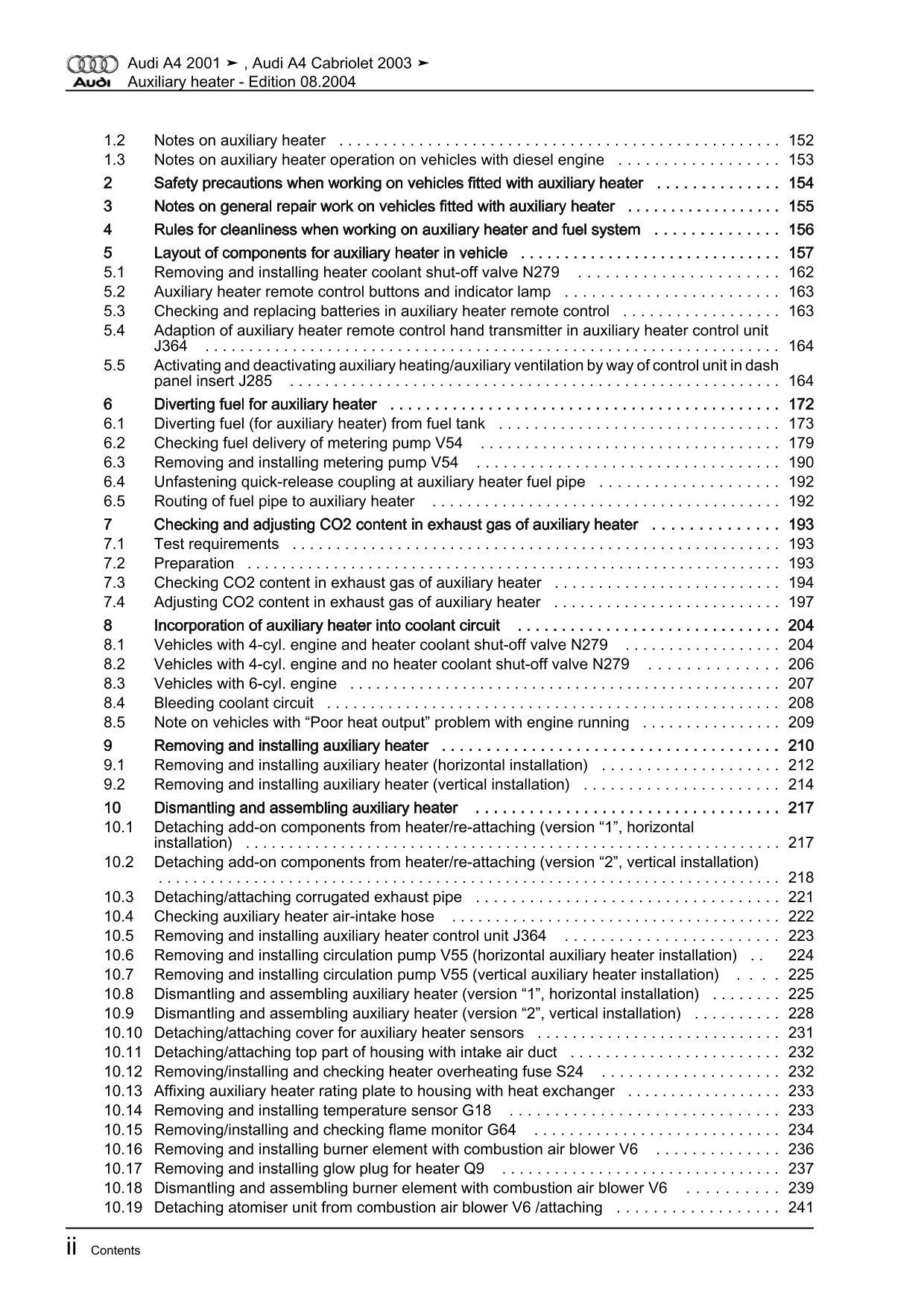 Audi A4 type 8E 2000-2008 auxiliary heater repair workshop manual eBook pdf