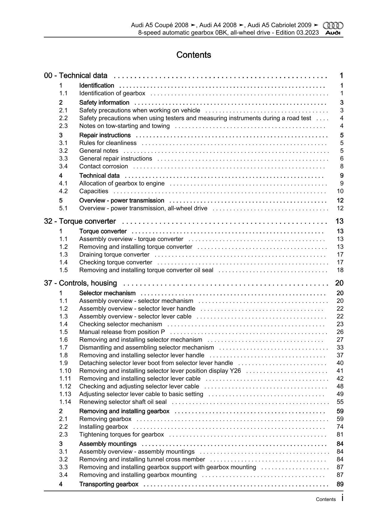 Audi A5 Cabriolet 8F 2009-2016 8 speed automatic gearbox 0BK repair manual eBook