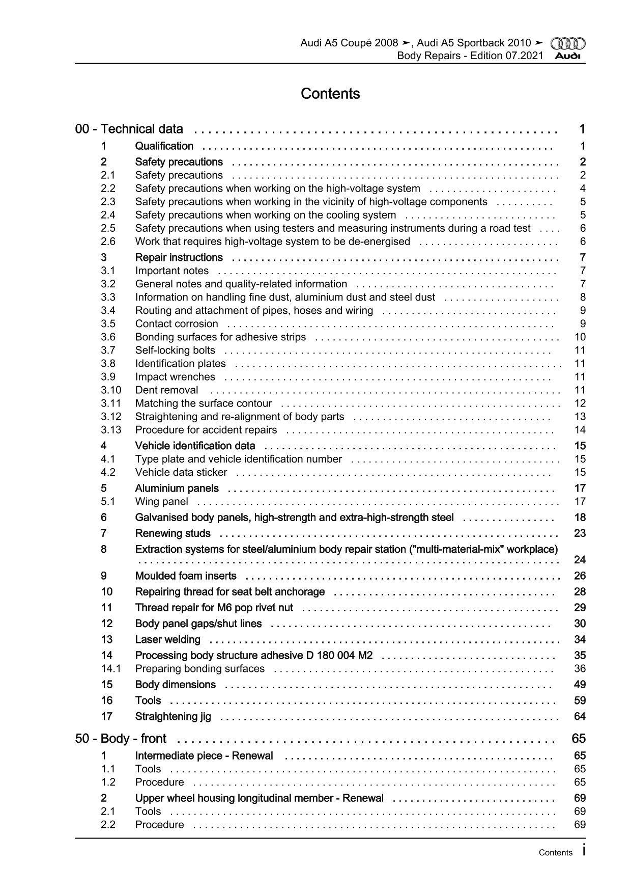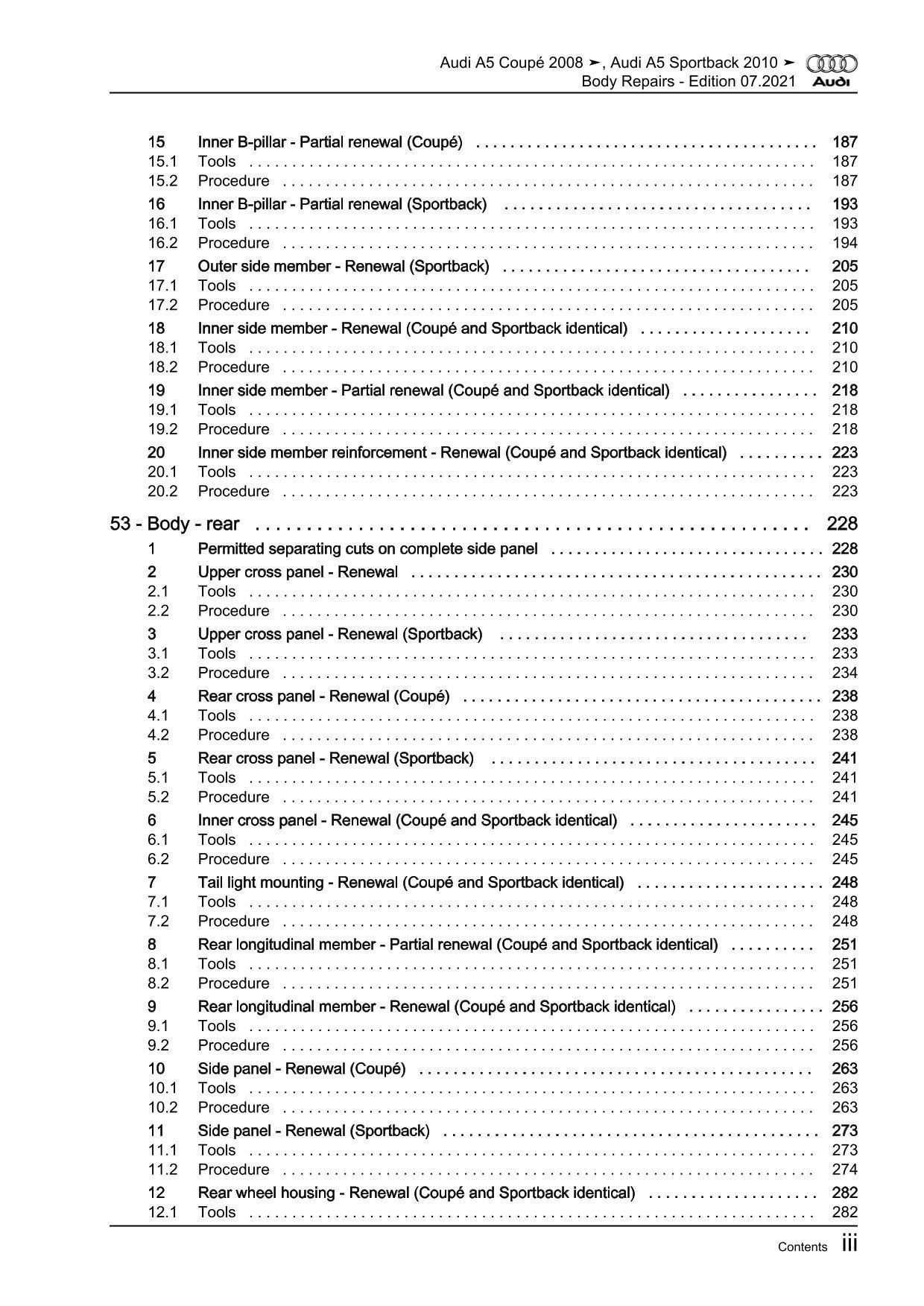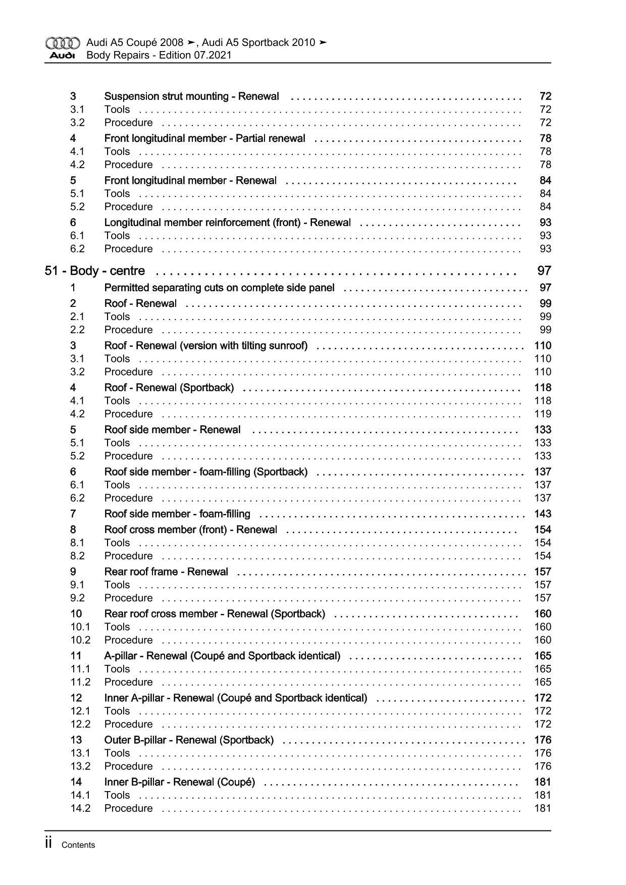 Audi A5 type 8T 2007-2016 body repairs workshop manual eBook pdf guide