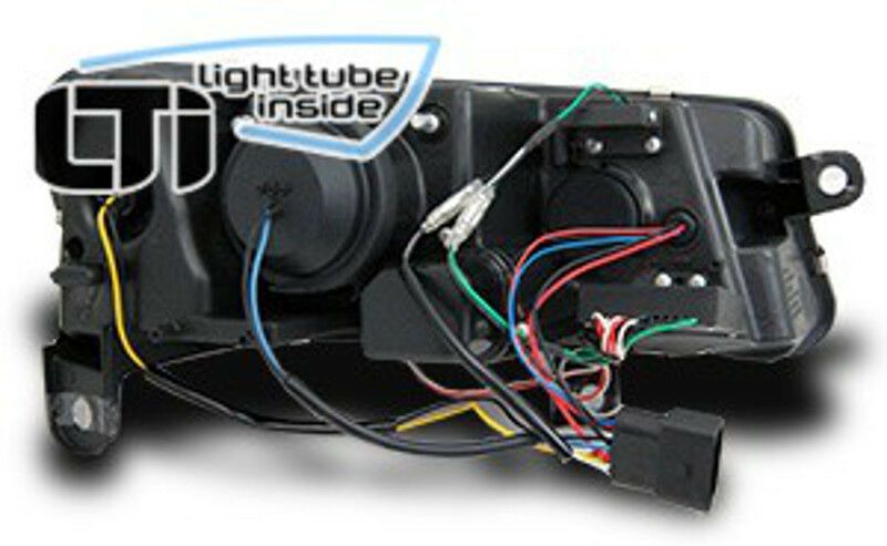< Artikelbezeichnung 1 Satz = 2 Stück LTi Scheinwerfer Audi A6 4F • Bj.: 2005-2008 in chrom • europaweite Zulassung im Bereich der STVZO • Led Tagfahrlicht Design Optik mit Light Tube • Leuchtmittel Abblendlich H7 und Fernlicht H1 • im One Block Design mit integrierten Blinkern • vorbereitet für
