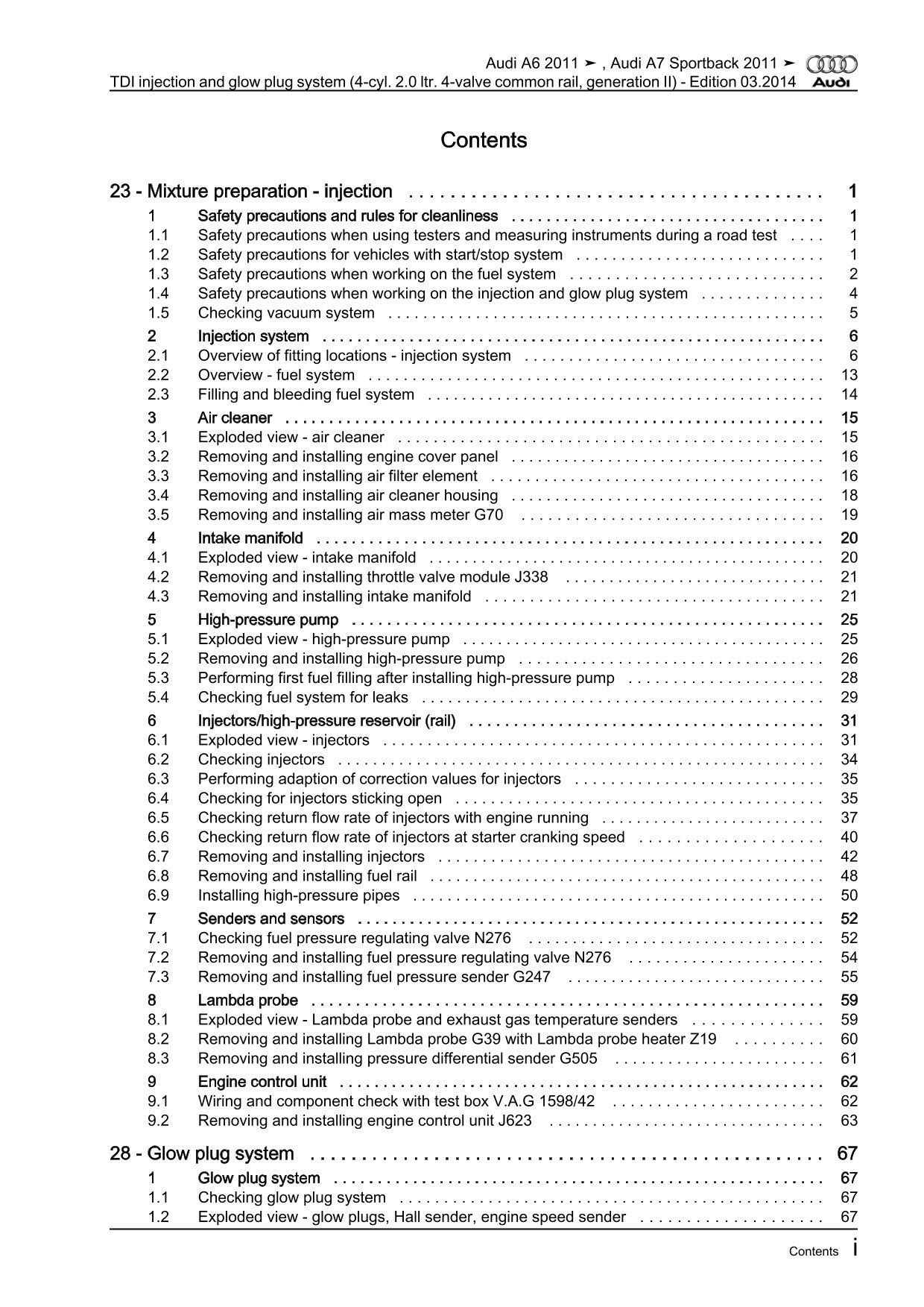 Audi A6 4G 2010-2018 diesel injection glow plug system 2.0l repair manual eBook