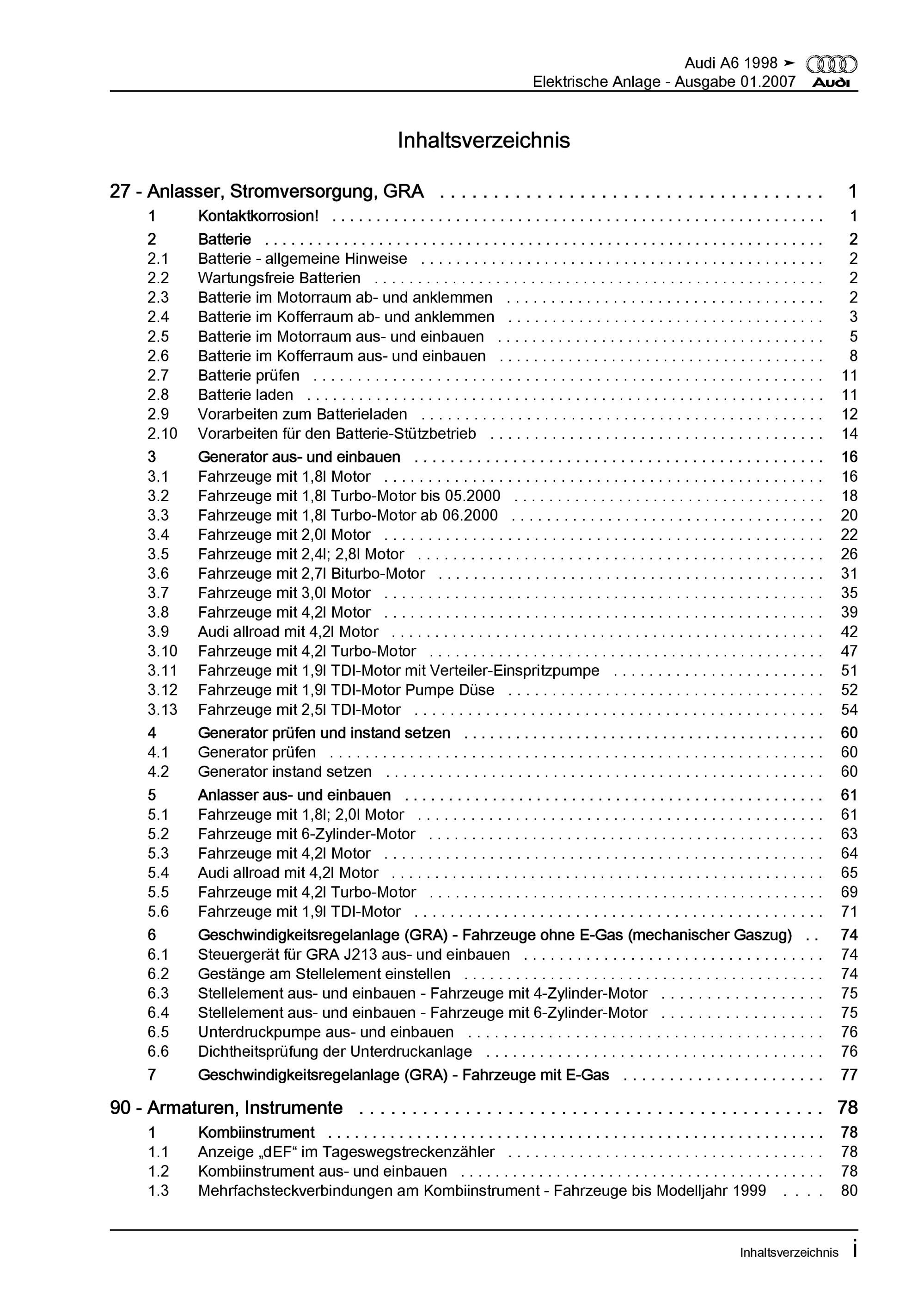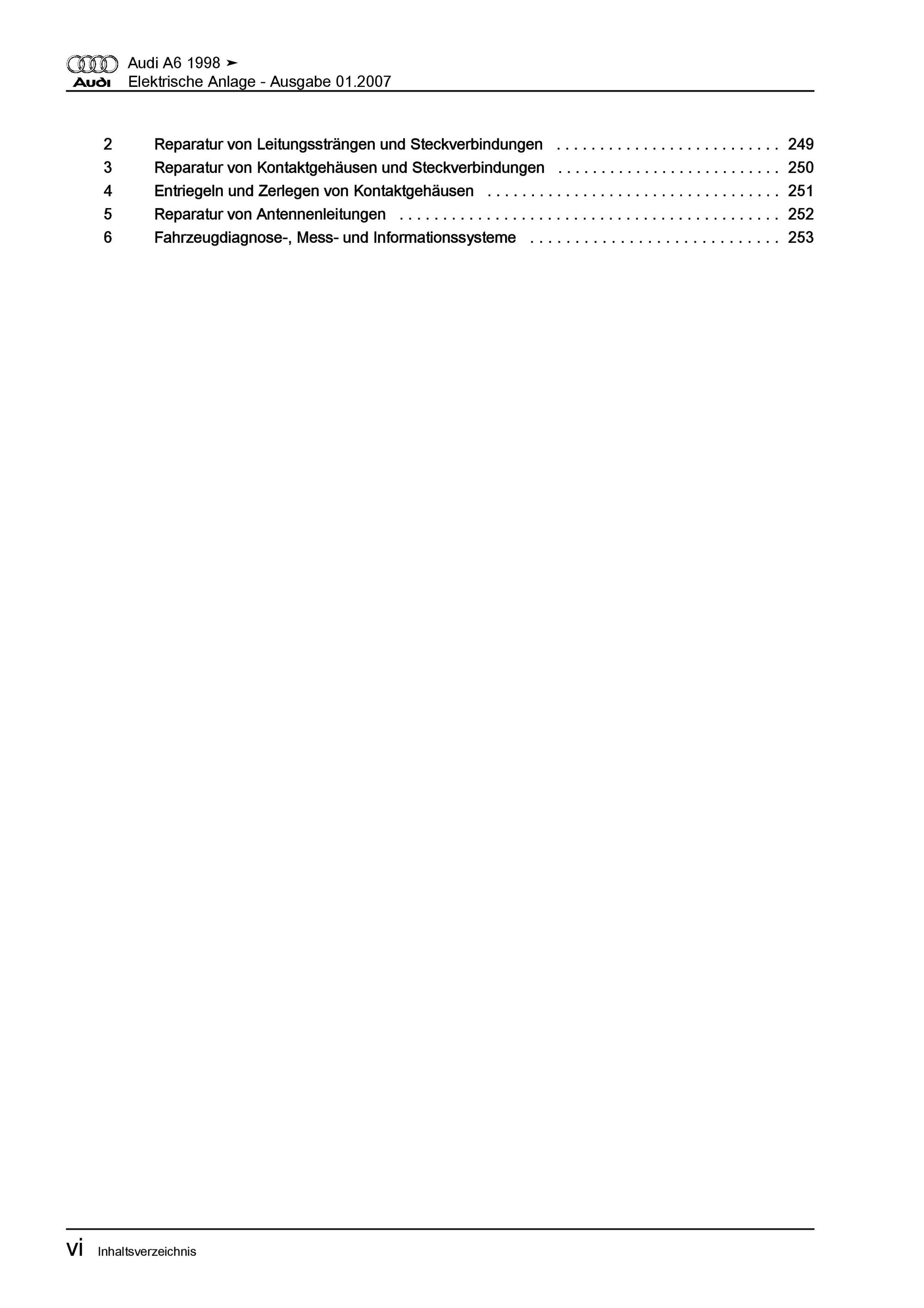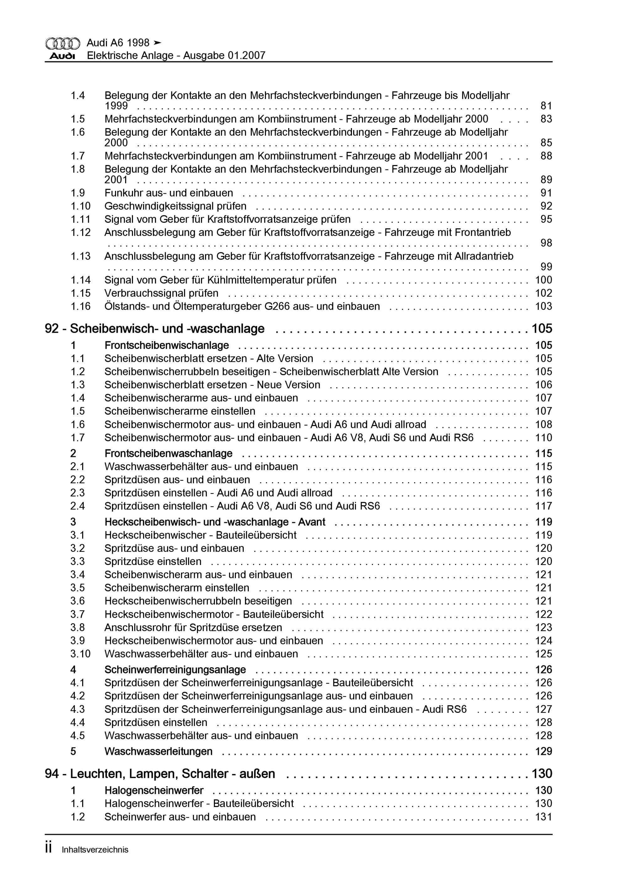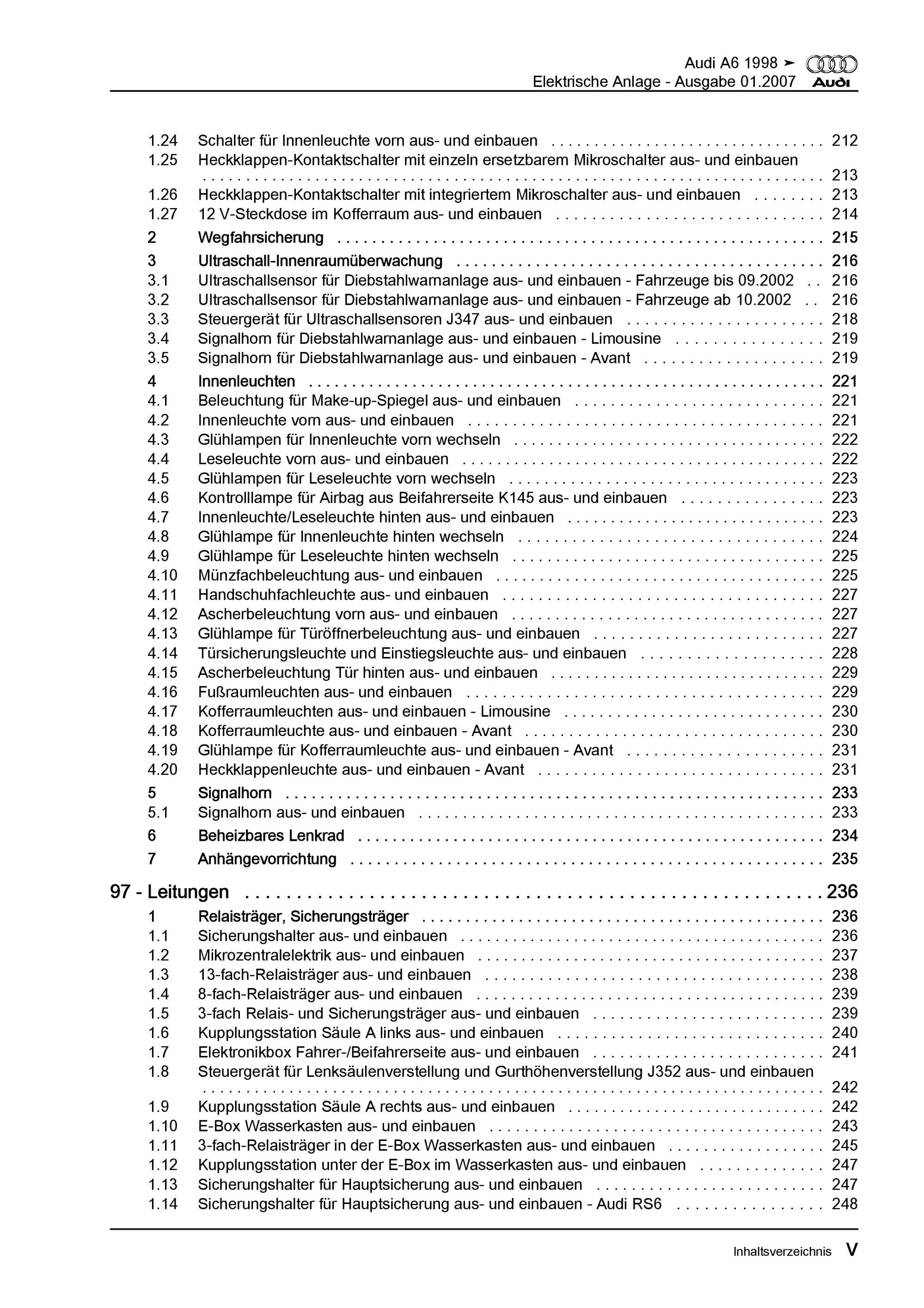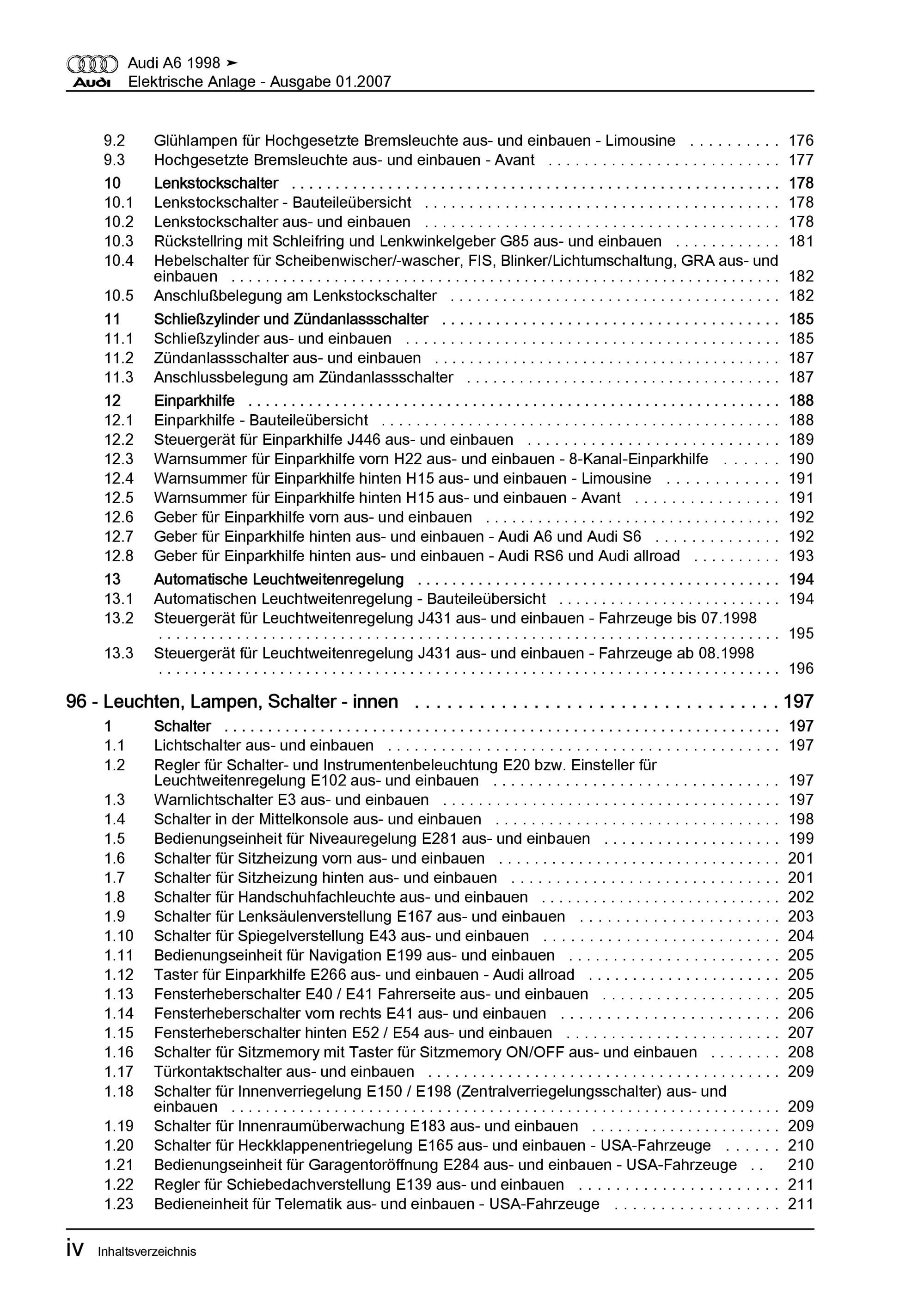 Audi AG Audi A6 Typ 4B 1997-2005 Elektrische Anlage Elektrik Systeme Reparaturanleitung