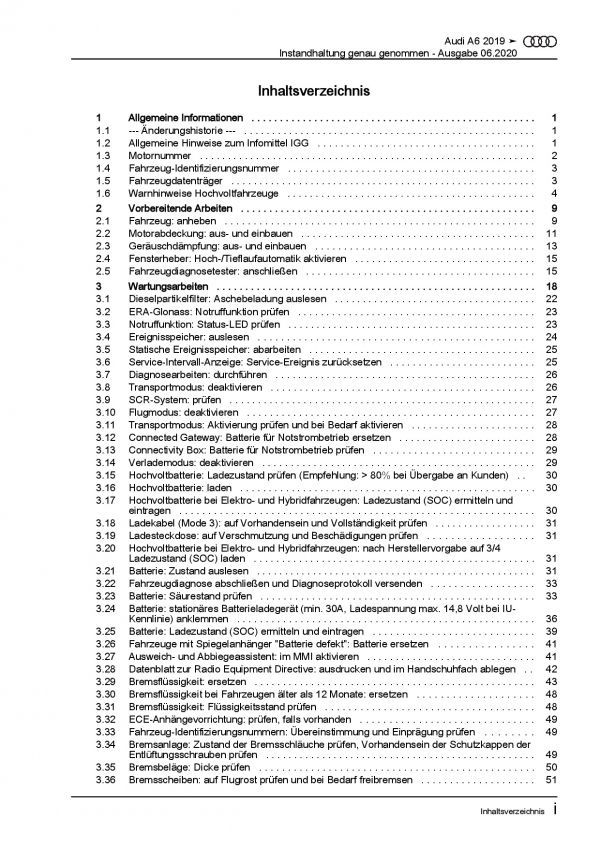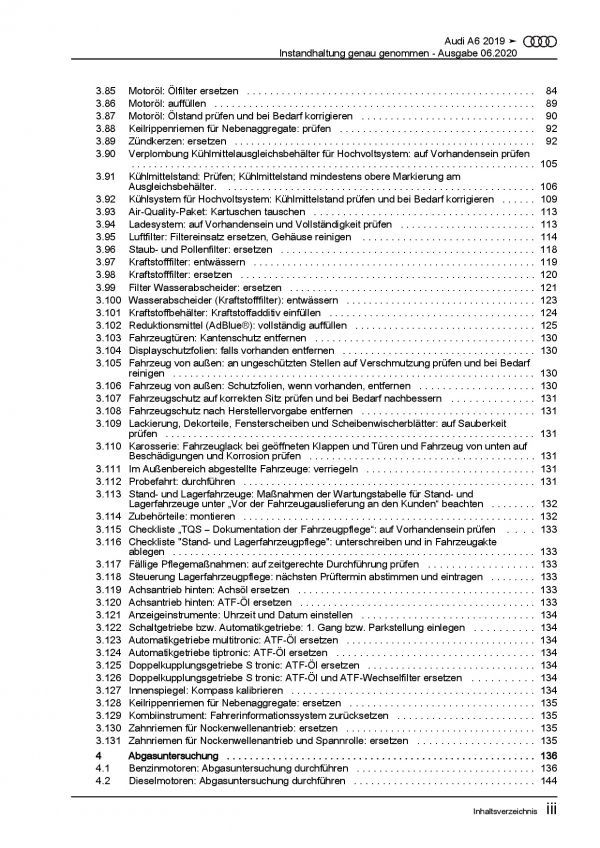 Audi AG Audi A6 Typ 4K ab 2018 Instandhaltung Inspektion Wartung Reparaturanleitung